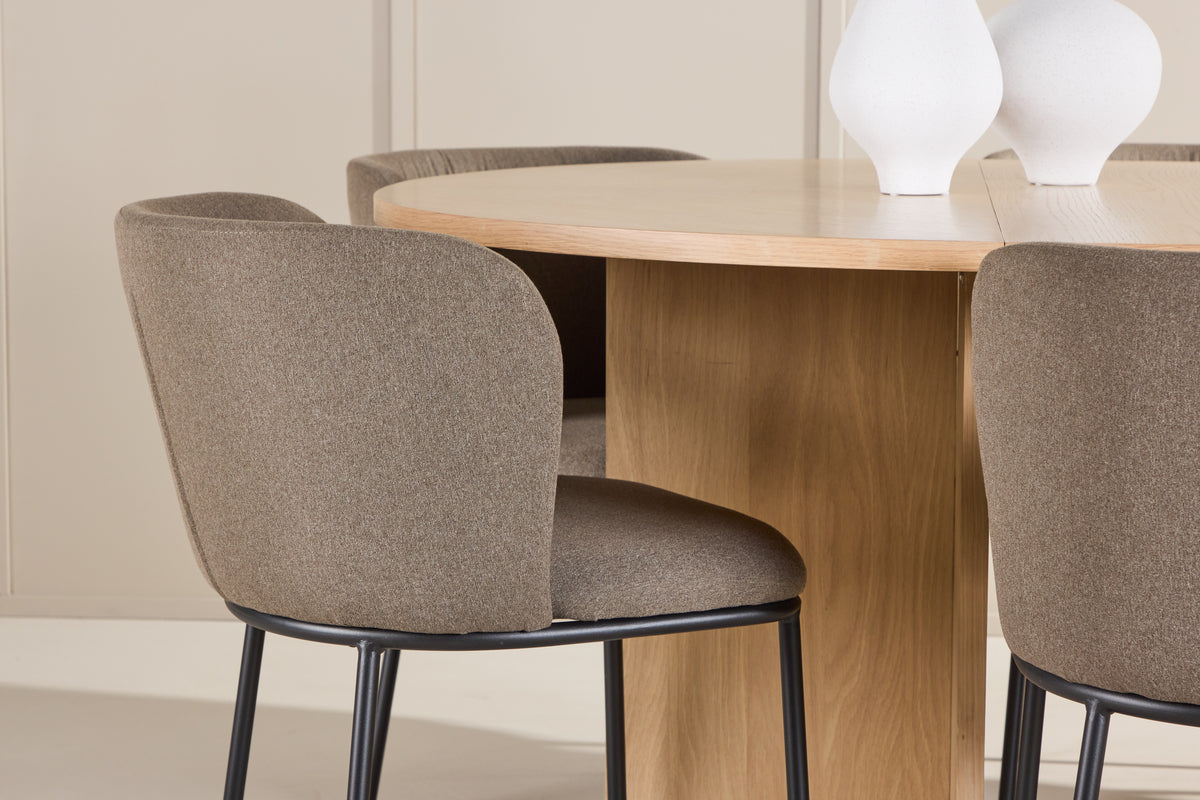 Tilsammen udgør Edina og Strada en smuk helhed, der forener naturlig varme med funktionel elegance. Den rustikke linnedssæde på Edina og Stradas lyse, fleksible design skaber en harmonisk og indbydende spiseplads for både hverdag og fest. Lad spisestolen Edina og spisebordet Strada blive det naturlige midtpunkt i dit hjem – en plads, hvor stil, komfort og funktion mødes for at skabe uforglemmelige stunder ved spisebordet.