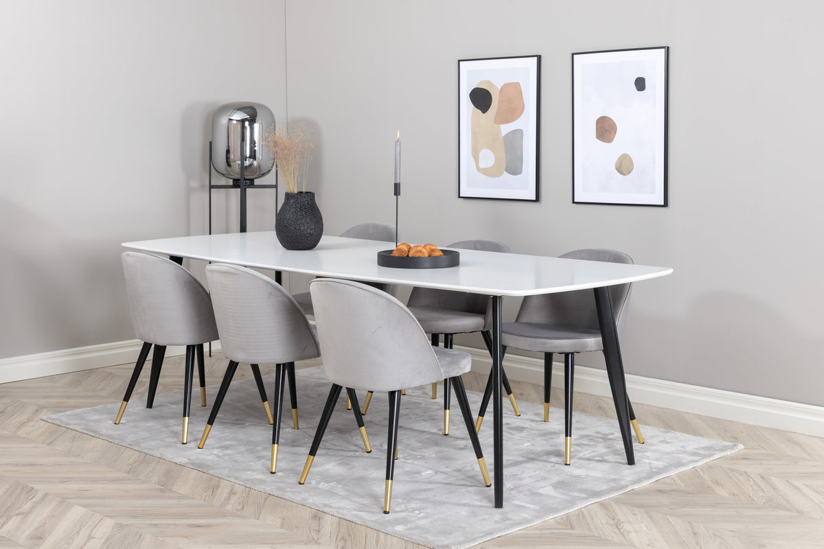 Spisebordsstol 2-pak Grå + Rektangulært Spisebord 240 x 100 Hvid
