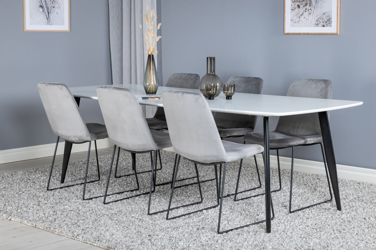 Spisebordsstol 2-pak Grå + Rektangulært Spisebord 240 x 100 Hvid