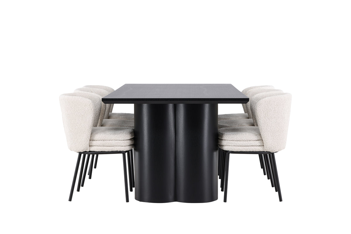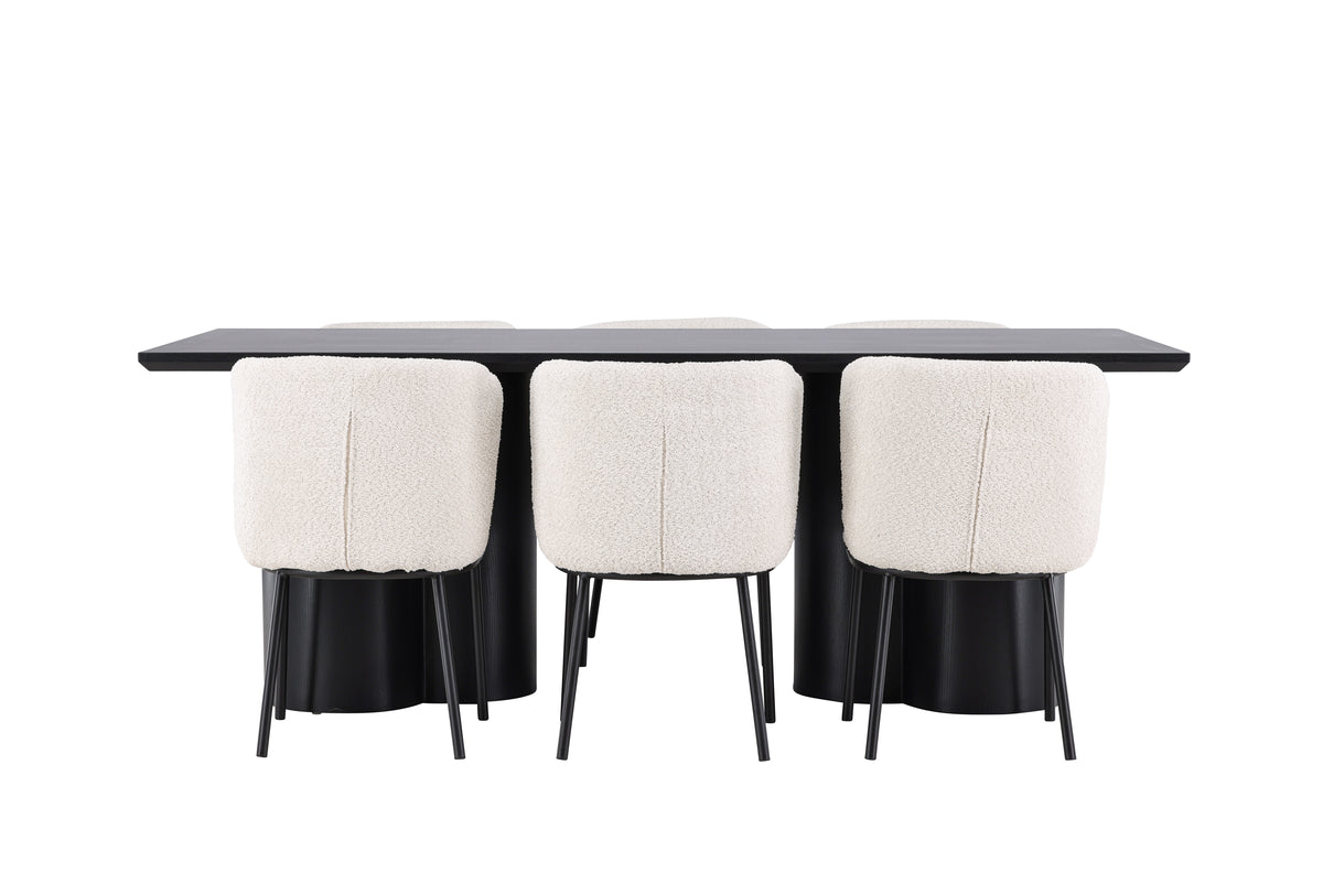 Agnes & Olivia Spisebordsstole 2-pak Hvid + Rektangulært Spisebord 210 x 100 Sort
