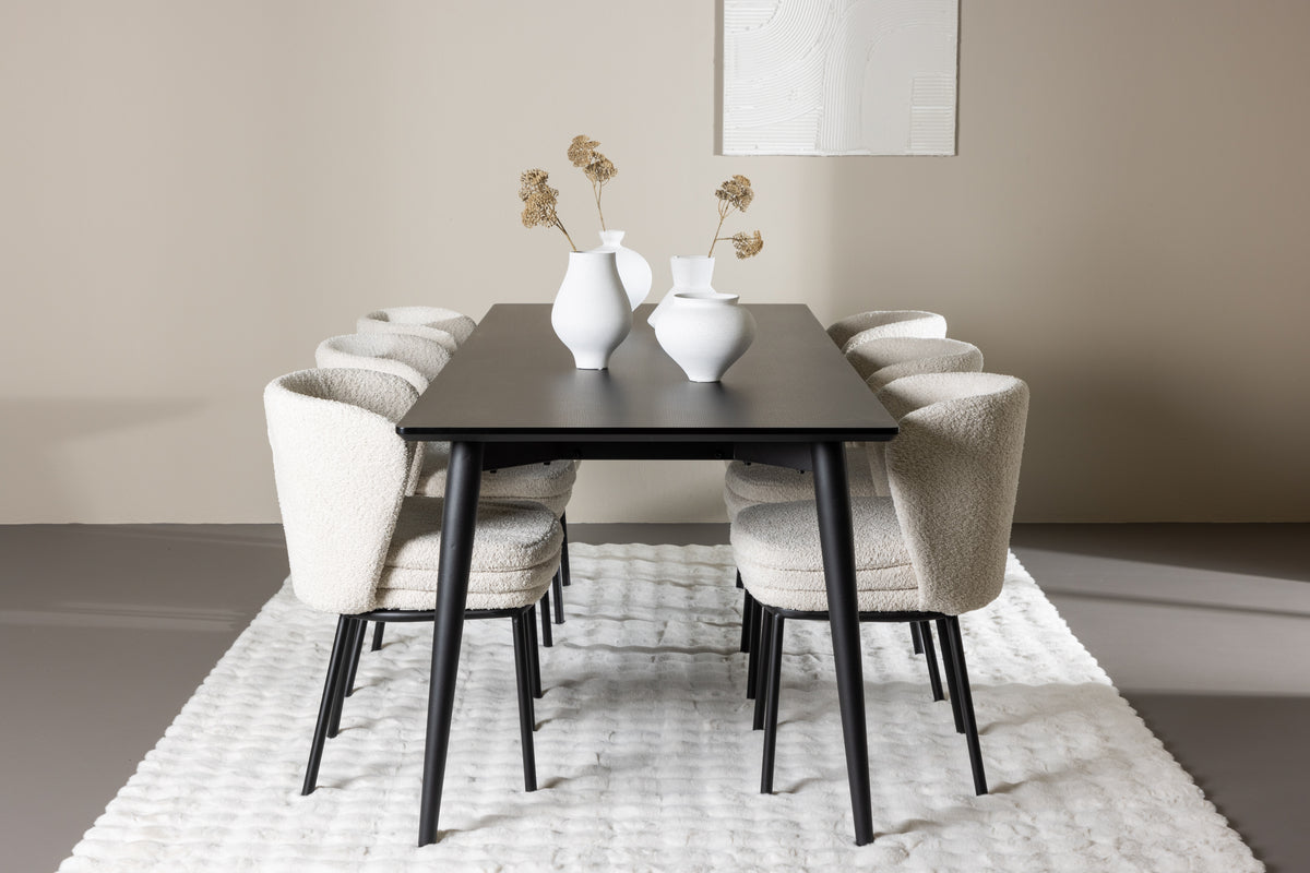 Agnes & Ellis Spisebordsstole 2-pak Hvid + Rektangulært Spisebord 230 x 85 Sort