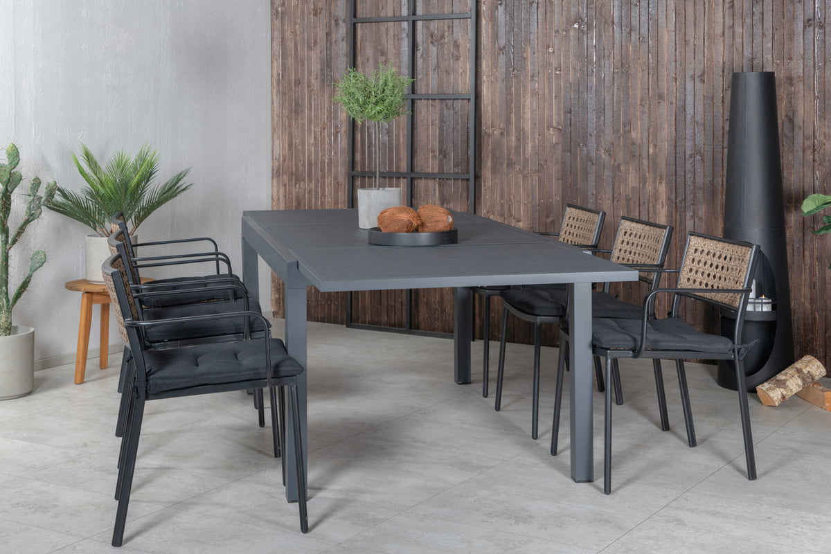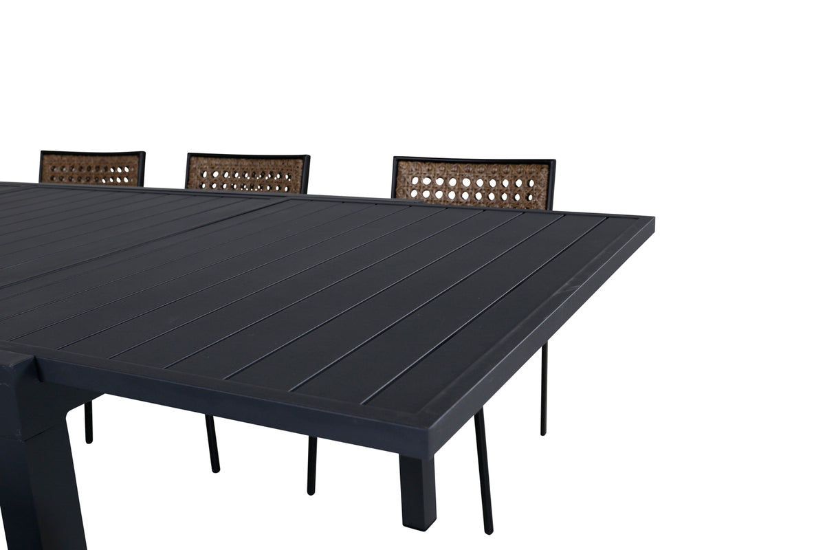 Paola & Marbella Spisestole 4-pak Natur + Rektangulært Spisebord 160x100x75 Sort