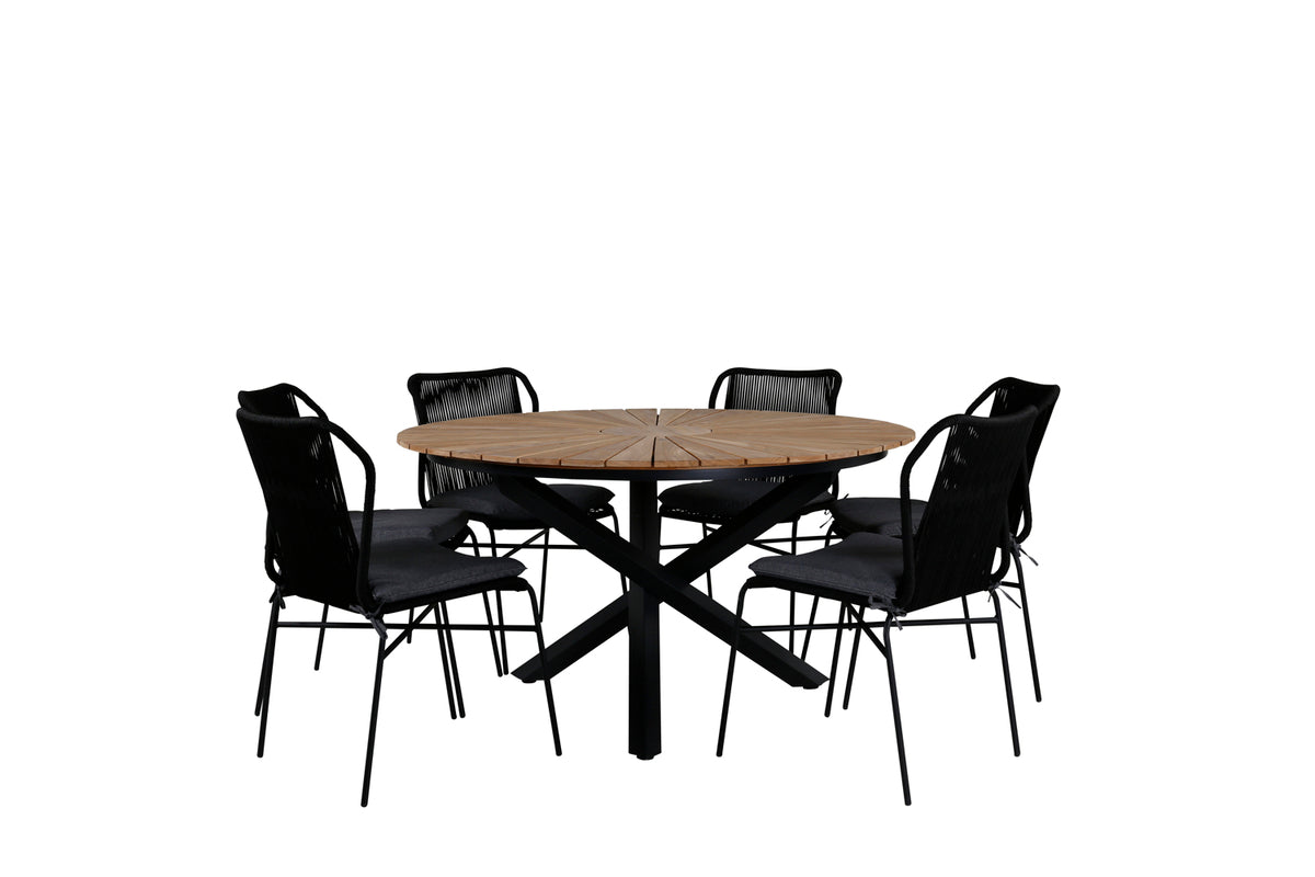 Julian & Mexico Spisestole Sort + Spisebord ⌀140