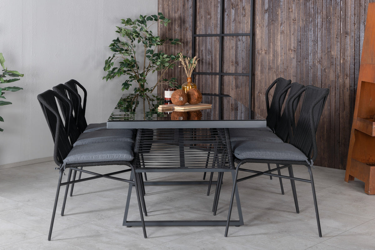 Julian & Dallas Spisestole Sort + Spisebord 193x90
