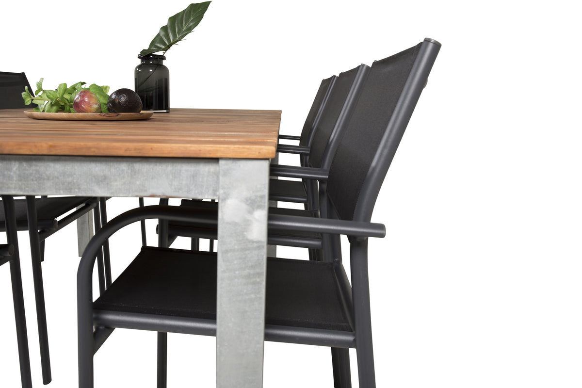 Klassisk spisegruppe, som passer på de fleste terrasser! Spisebord Zenia sammen med stole i serien Santorini er som skabt til dig, der vil skabe en hyggelig og moderne følelse på terrassen.