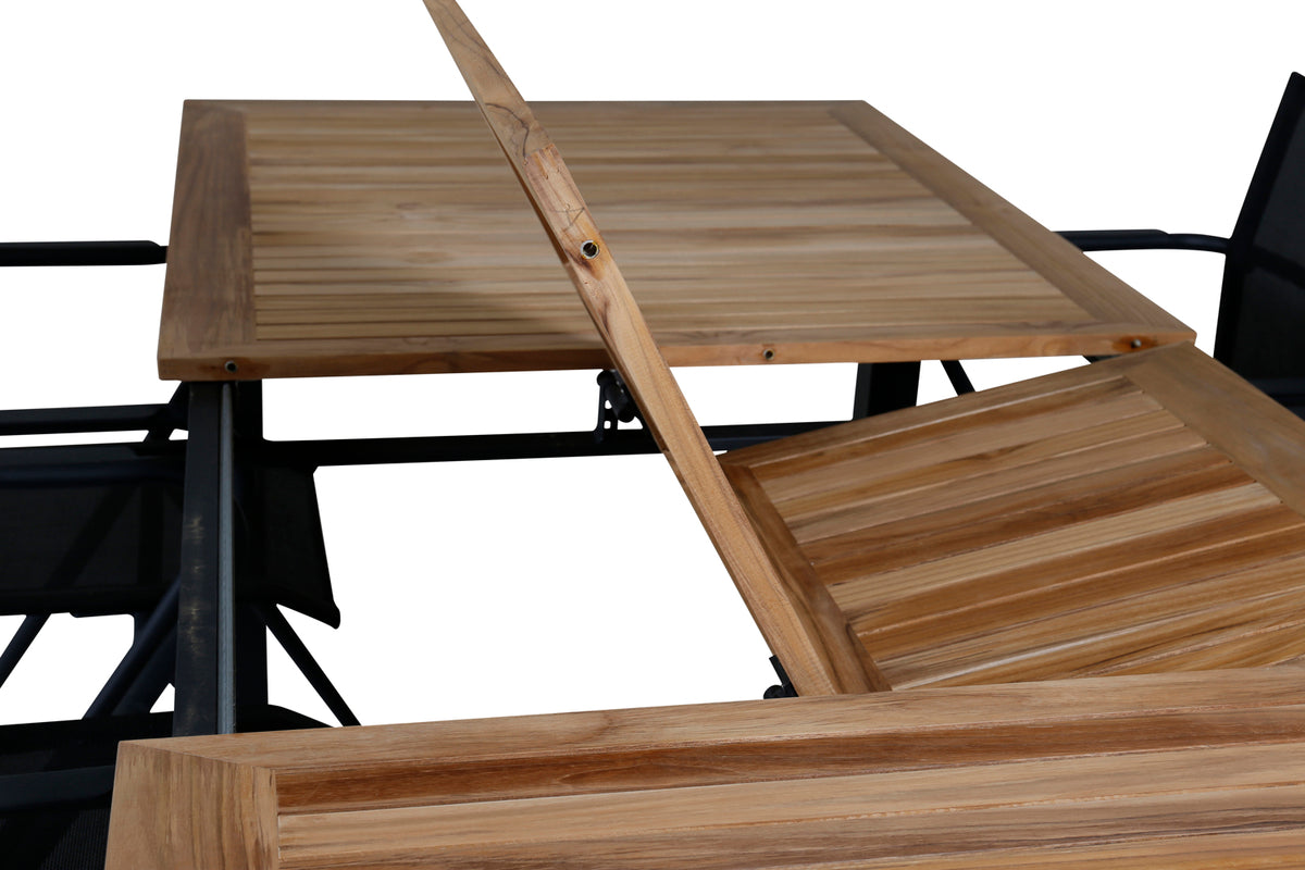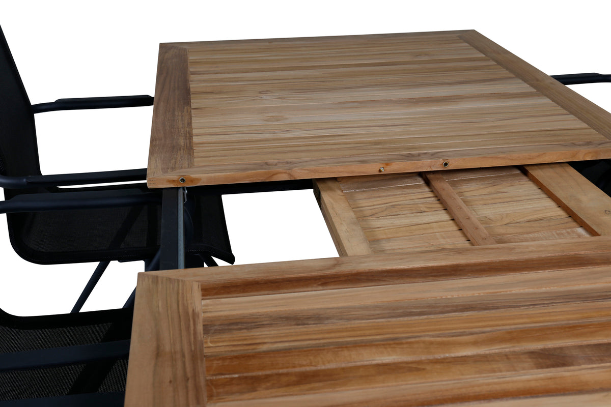 Velkommen sommerens måltider udendørs med en indbydende spisegruppe i generøs størrelse! Her kombineres vores forlængelsesbare spisebord Panama med stilrene spisestole fra serien Alina i sort kulør. Her sidder du gerne længe og nyder gode venners selskab!