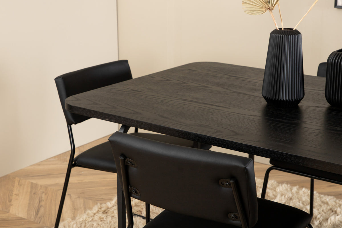 Kenth & Uno Spisebordsstole Sort + Spisebord 90x200