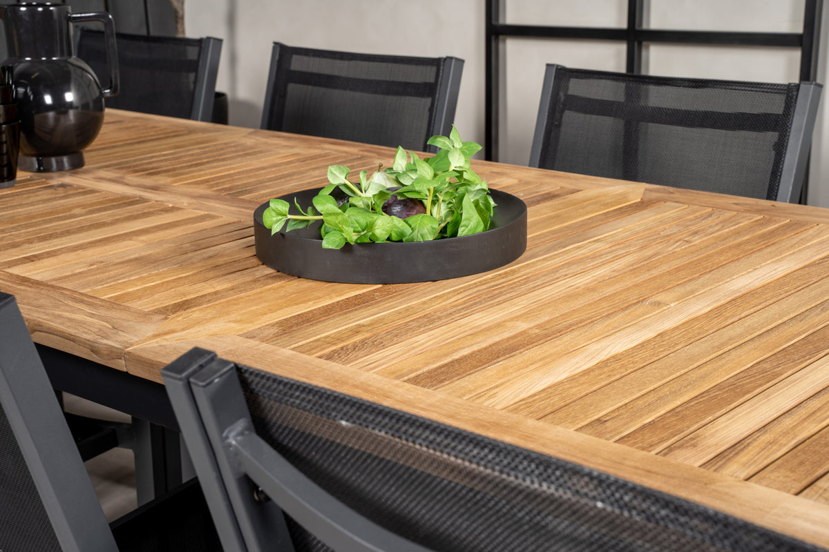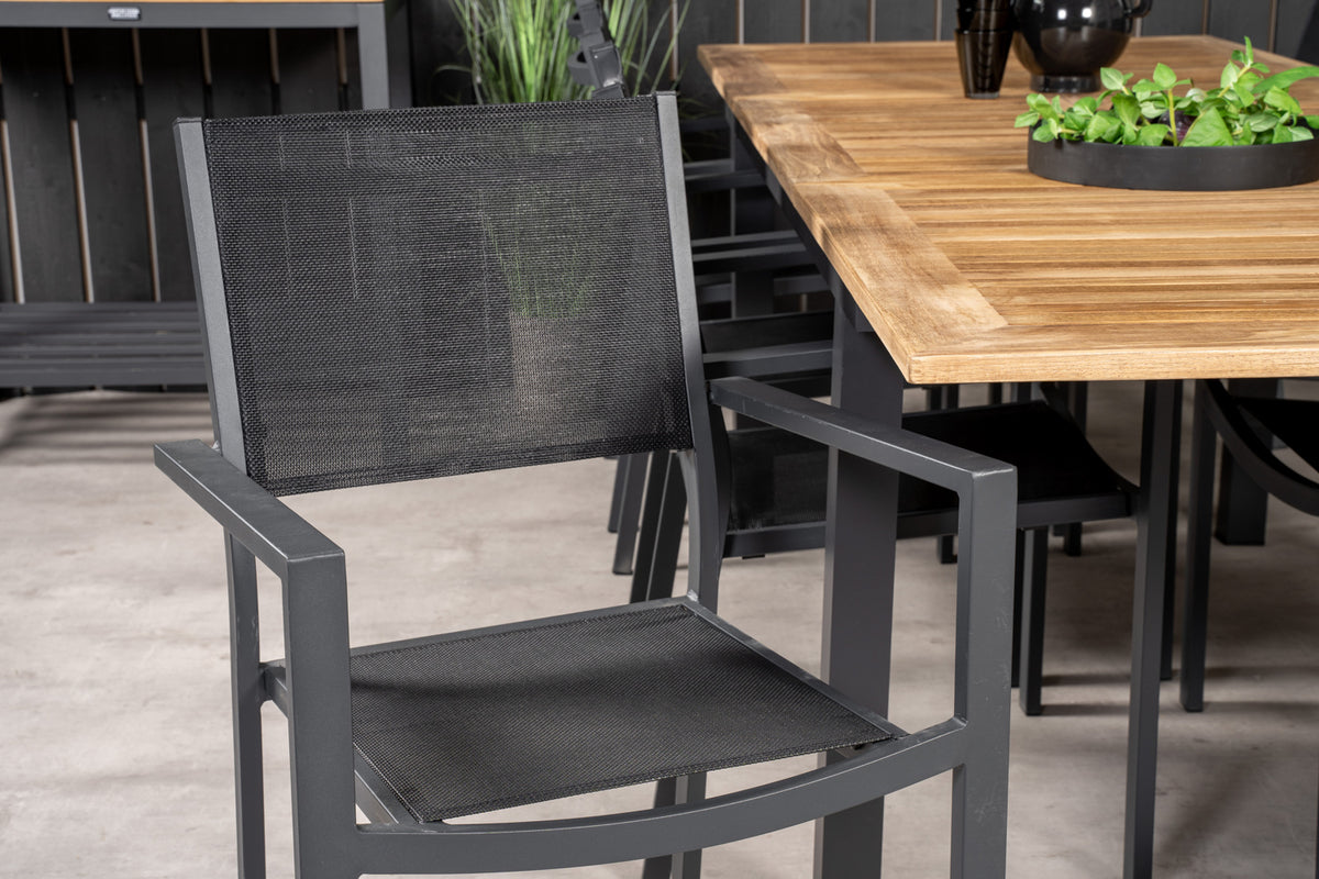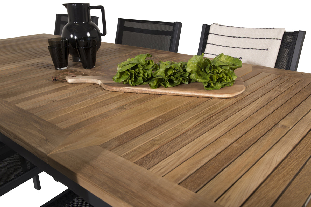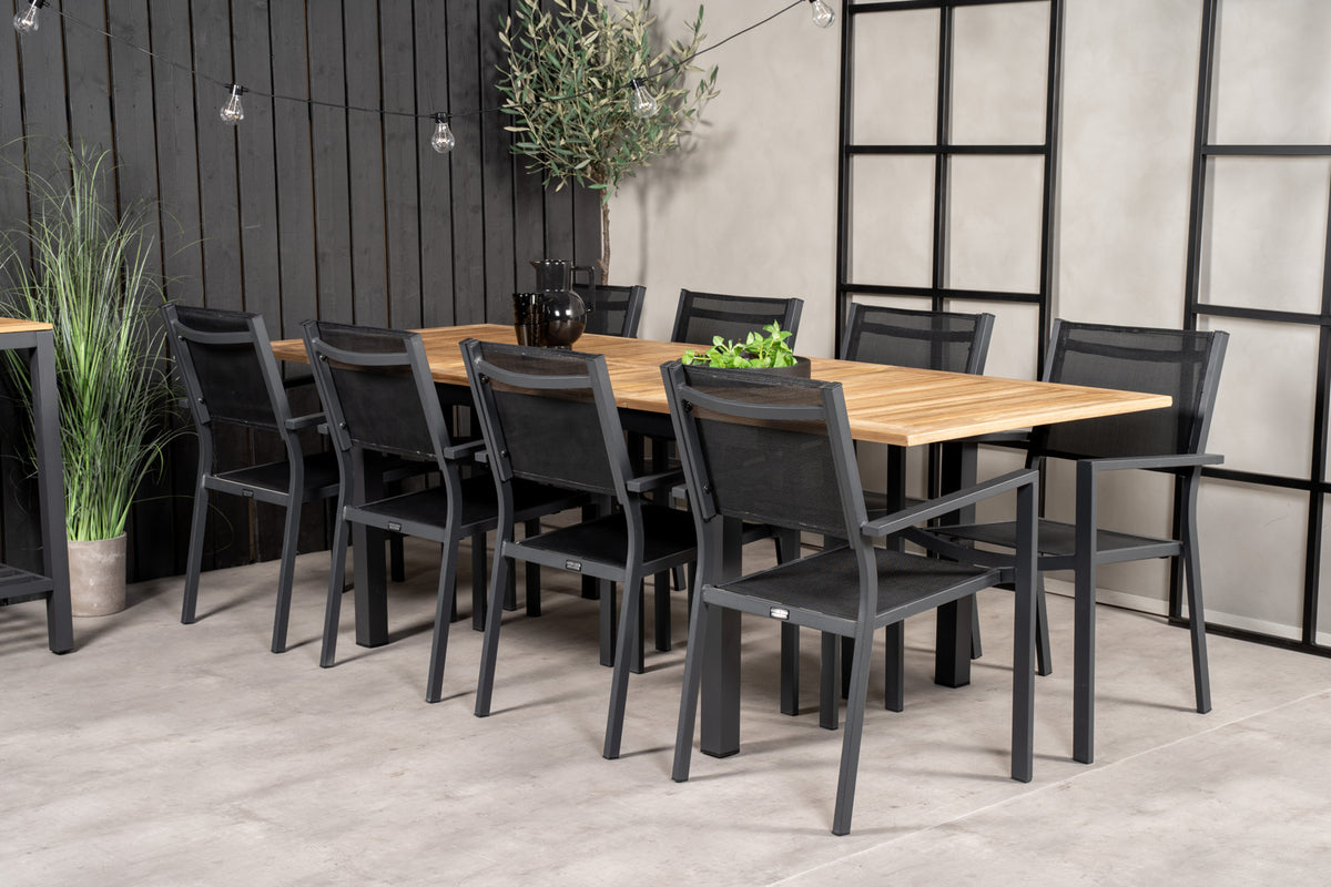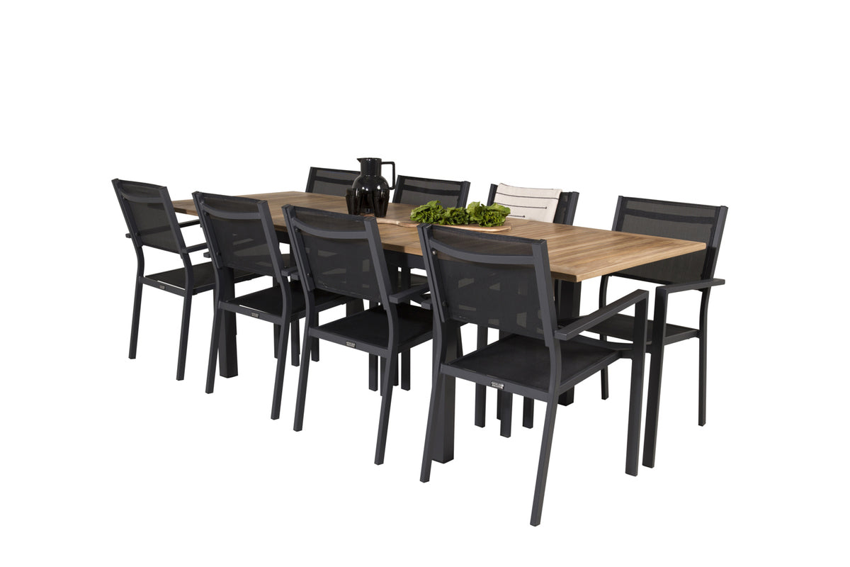 Lad denne smukt matchede spisegruppe med moderne følelse blive et naturligt samlingssted på terrassen. Spisestole Copacabana har god komfort, og spisebord Panama gør, at du slipper for at bekymre dig om, hvorvidt der er plads til alle.