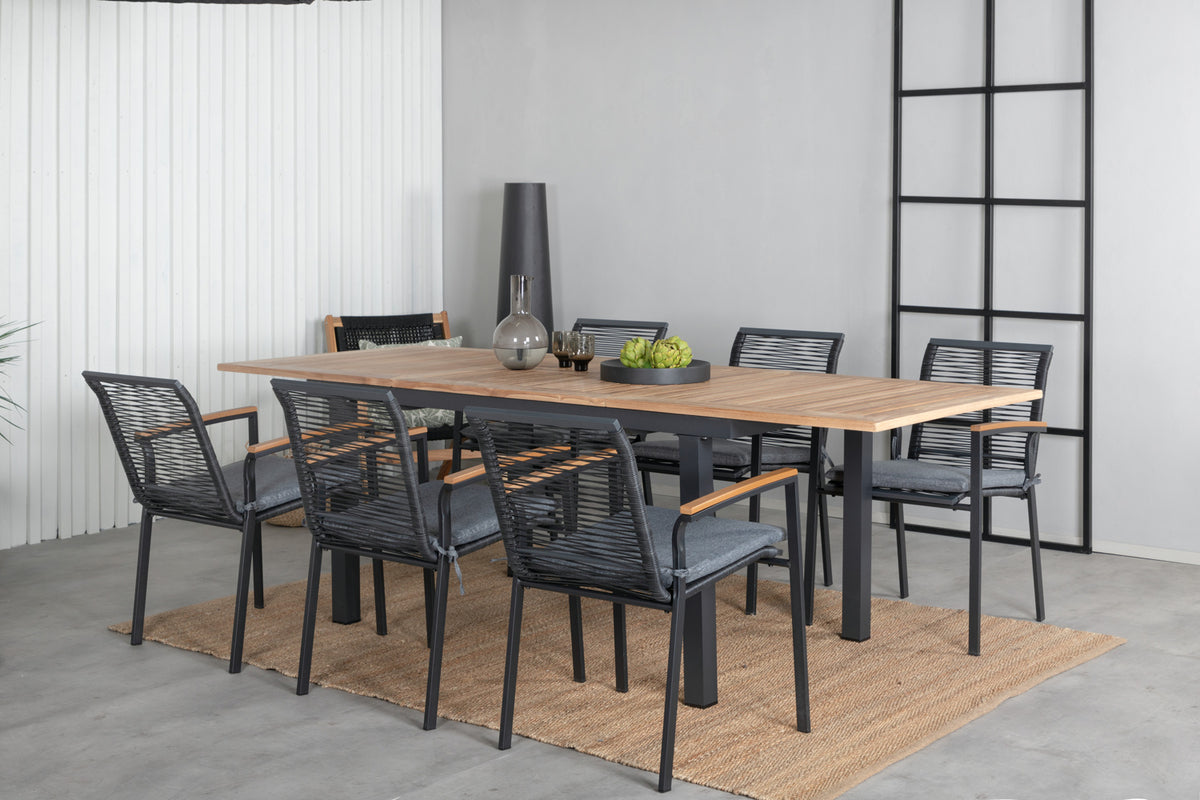 Dallas & Panama Spisestole Sort + Rektangulært Spisebord 160x90x75 Sort