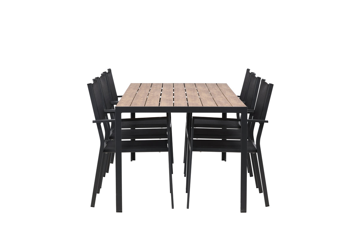 Copacabana & Break Spisestole Sort + Rektangulært Spisebord 205x90x74 Natur