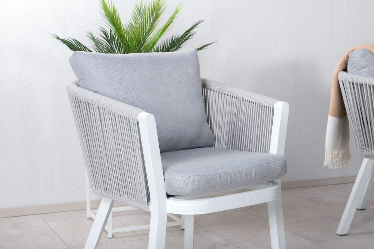 Virya, vores populære kurvlignende spisestole i gråt reb har høj komfort og moderne design. Her sammen med vores forlængelsesbare spisebord Levels. Udvid dine middagsinvitationer i sommer og slip for at bekymre dig om, at alle kan få plads.