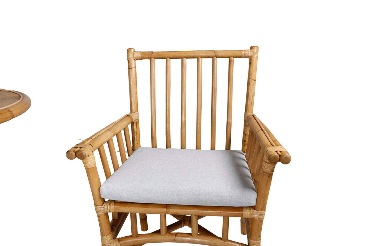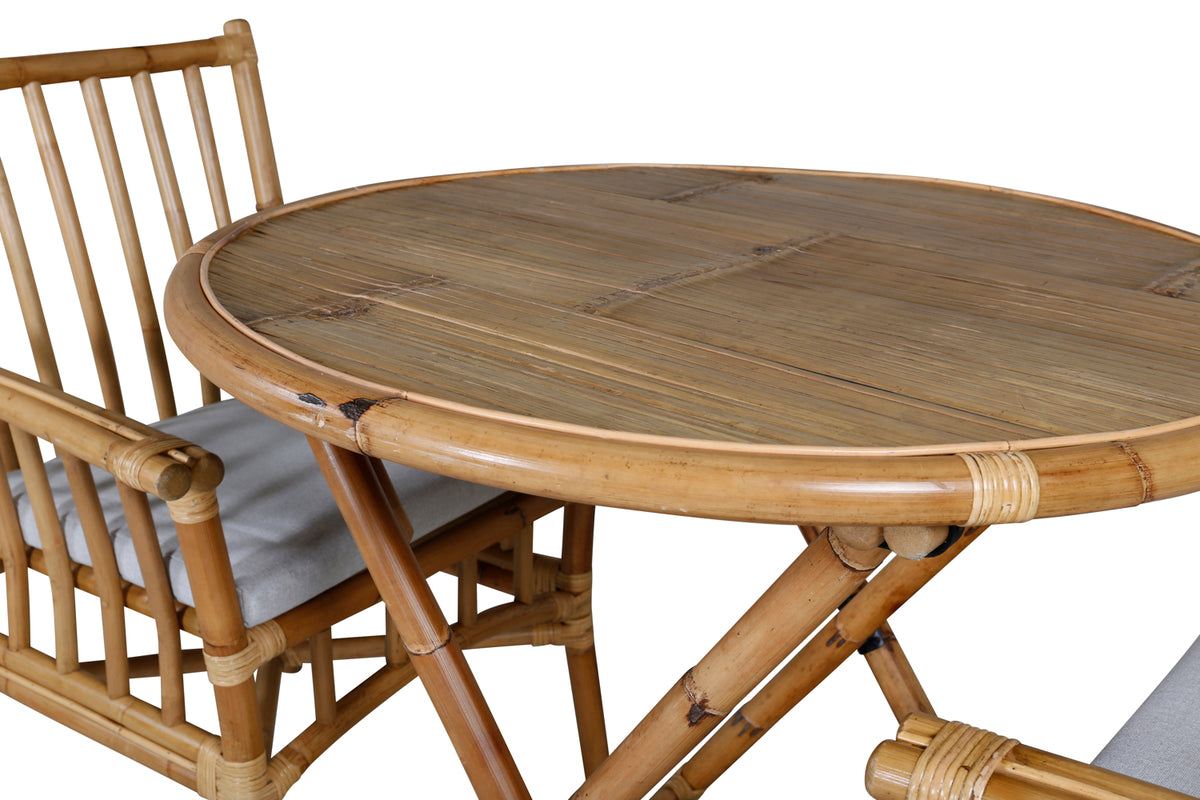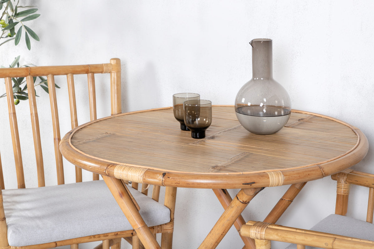 Cane, vores smukt matchende cafébord og spisestole i naturfarvet bambus. Denne nette kombination passer let ind i de fleste miljøer og giver en rolig og indbydende følelse. Møbler på terrassen eller altanen for at skabe det perfekte sted til en kop kaffe på en dejlig sommerdag.
