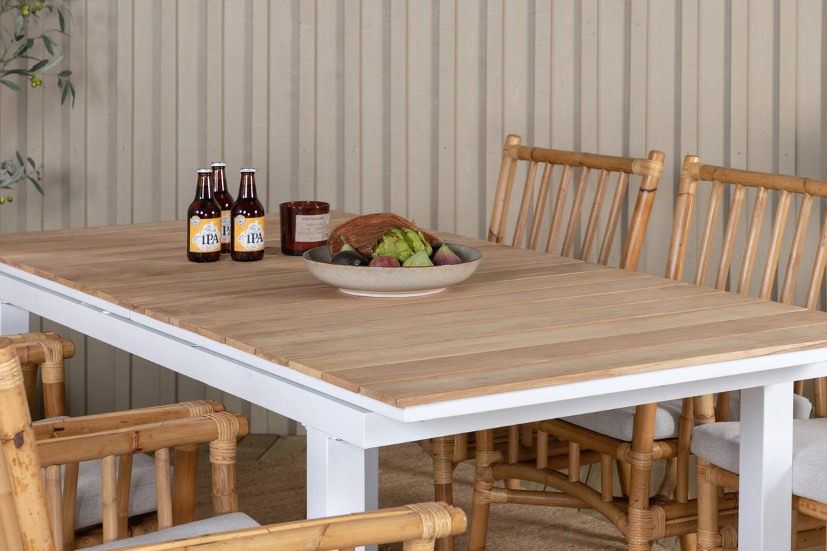 Skab den perfekte feriestemning på din terrasse i sommer! Her kombinerer vi bambusstole Cane med tropisk følelse sammen med det forlængelige spisebord Mexico. Indret terrassen indbydende, luksuriøst og bekvemt!