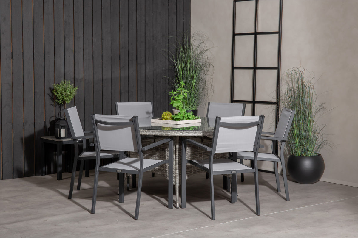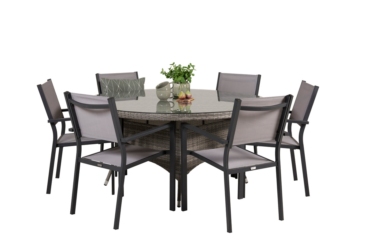 Copacabana & Volta Spisebordsstole + Rundt Spisebord ø150 Grå
