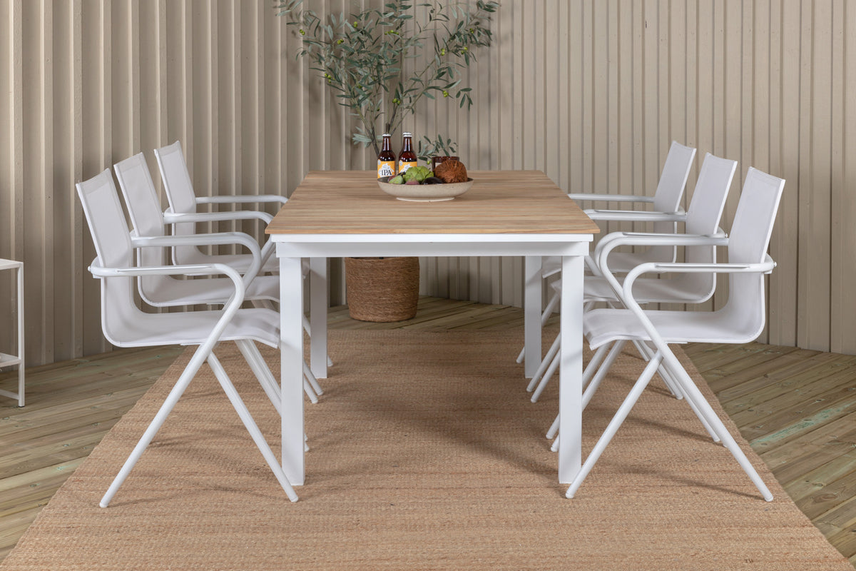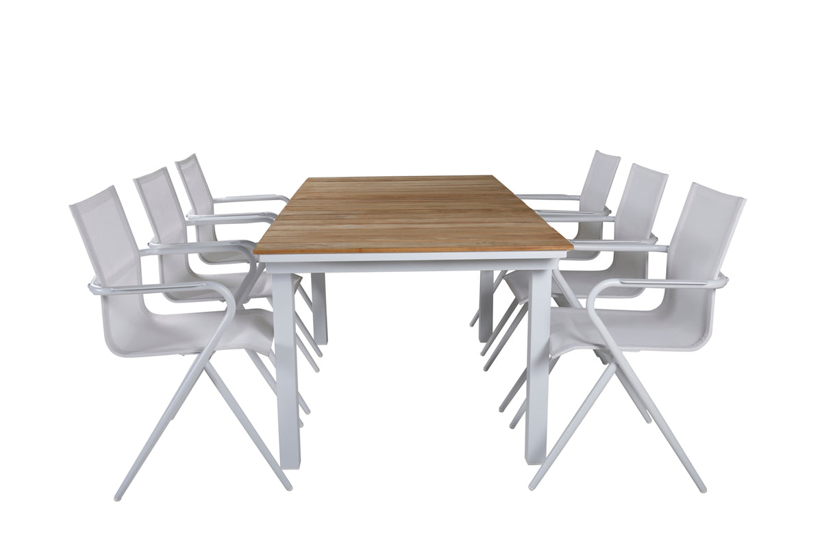Hvad mere kan man ønske sig end en spisegruppe, der både er trendsikker, praktisk og rummer plads til alle nære og kære? Det er præcis, hvad denne kombination tilbyder! Spisebord Mexico i flot teak sammen med vores trendsikre spisebordsstole i serien Alina. Så udvid dine middagsinvitationer og nyd dejlige sommeraftener sammen på terrassen!