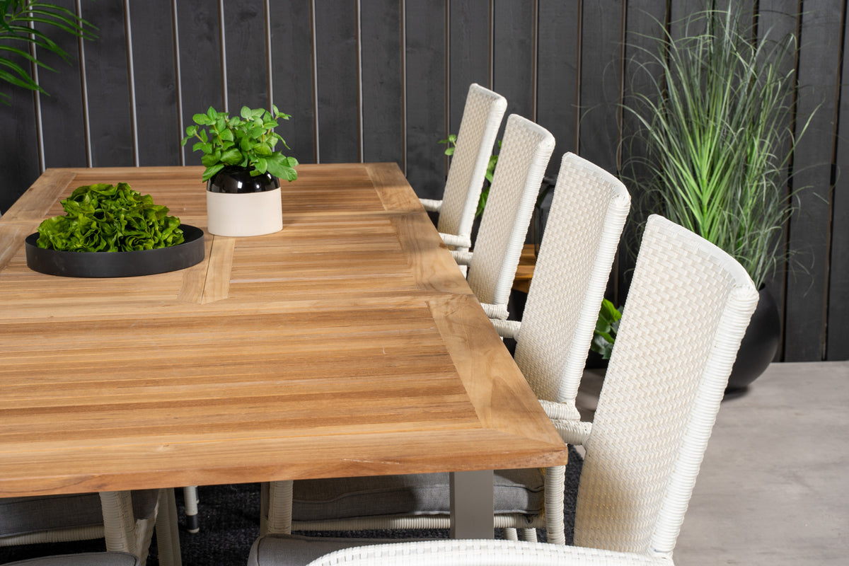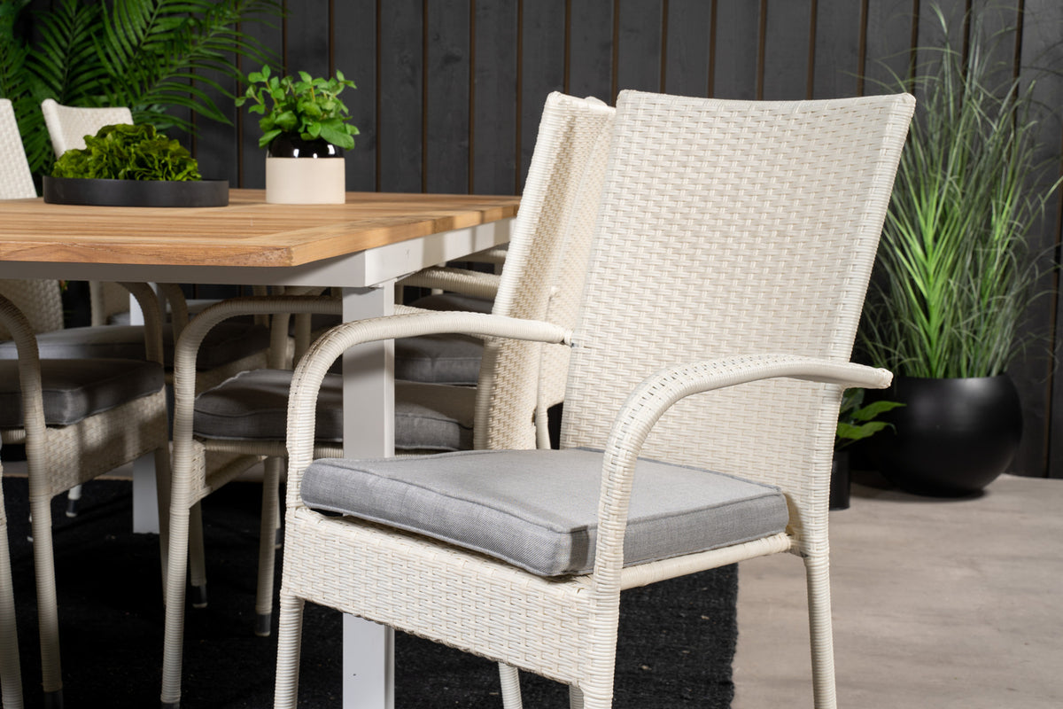 Møblér udestuen eller terrassen med denne trendsikre og stilrene spisegruppe! Spisebord Panama har en lækker bordplade i træ og her i perfekt kombination med spisestole Anna i tidløst design! Saml familie og venner og nyd varme sommeraftener sammen i din nye iøjnefaldende spisegruppe.