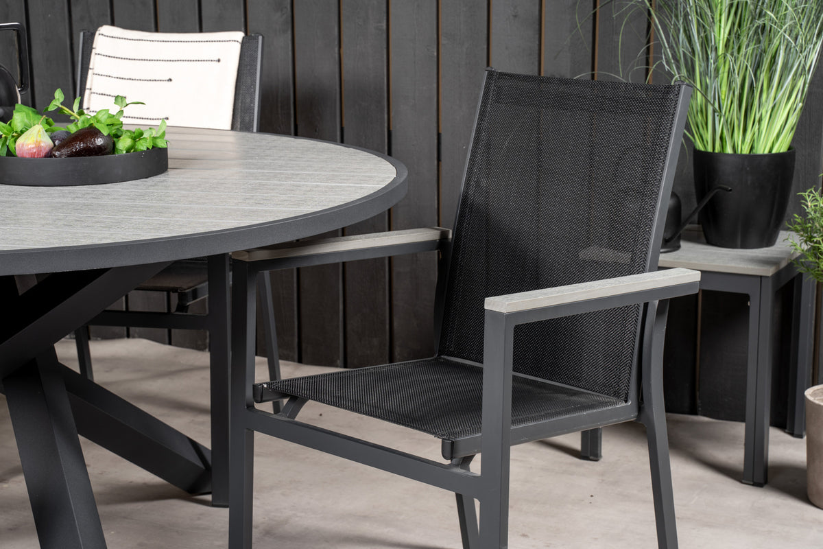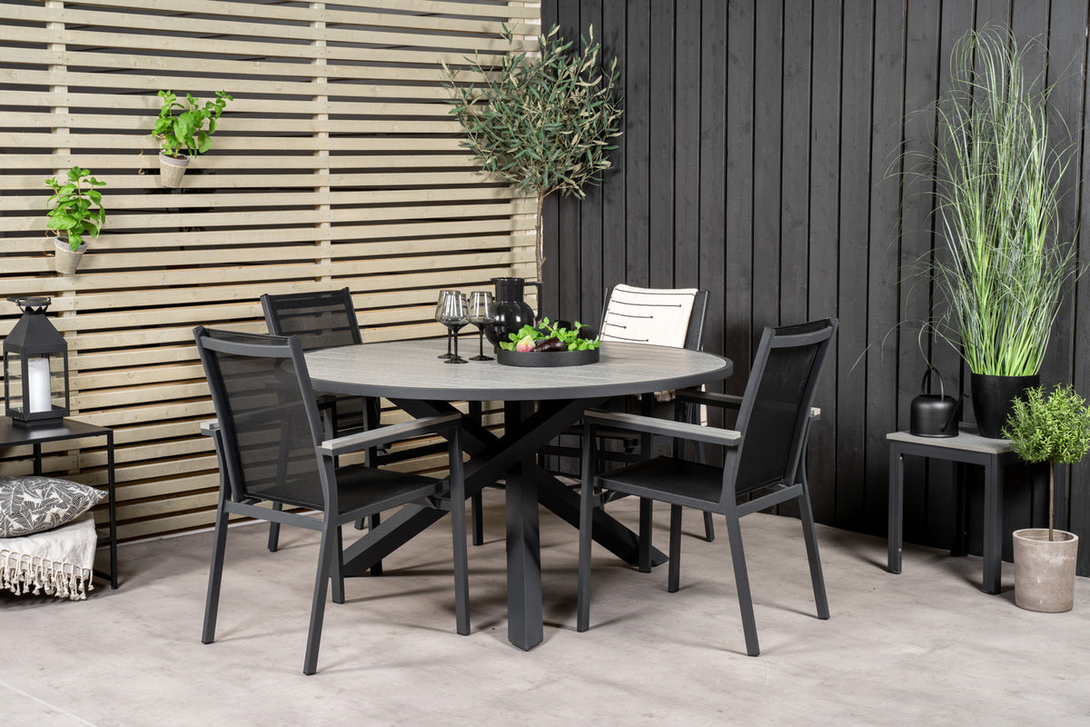 En rund spisegruppe er med til at skabe en dejlig stemning på terrassen eller altanen. Her kombineres vores spisebord Parma med vores stilfulde stole i samme serie.