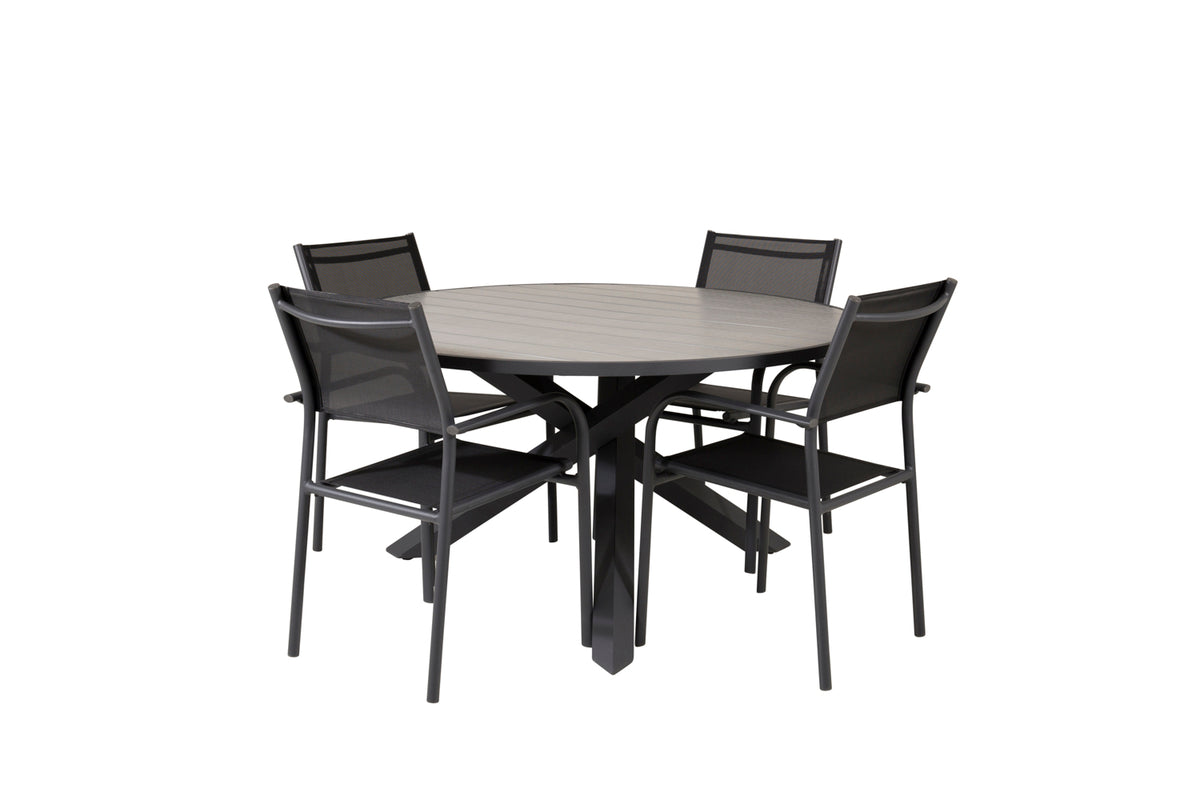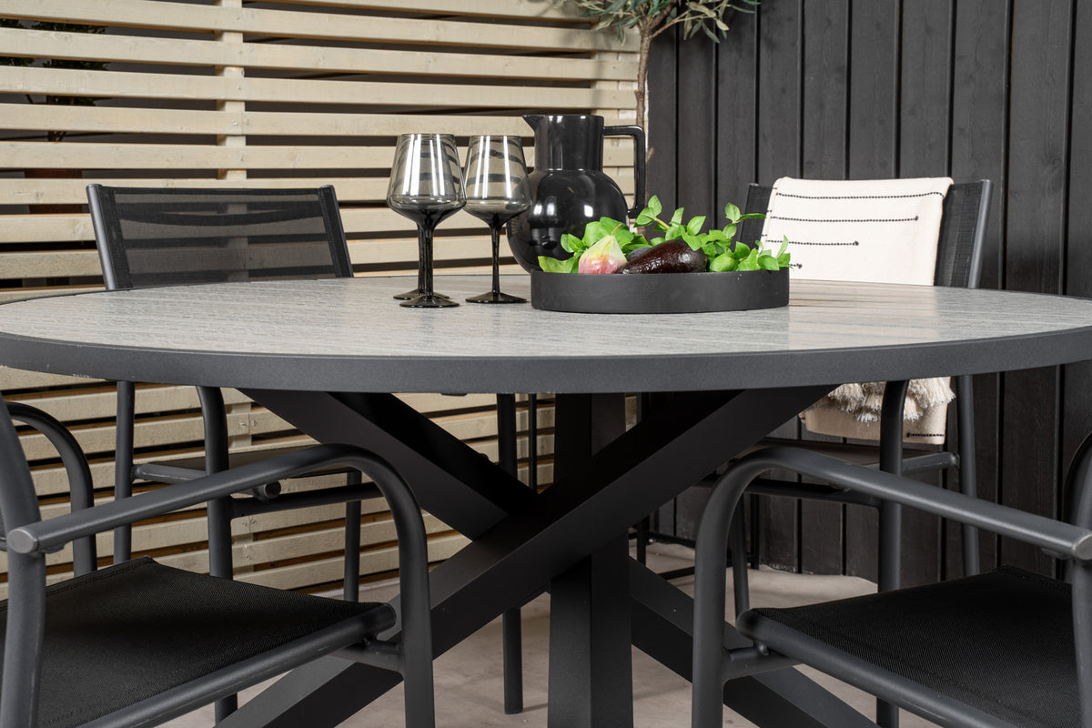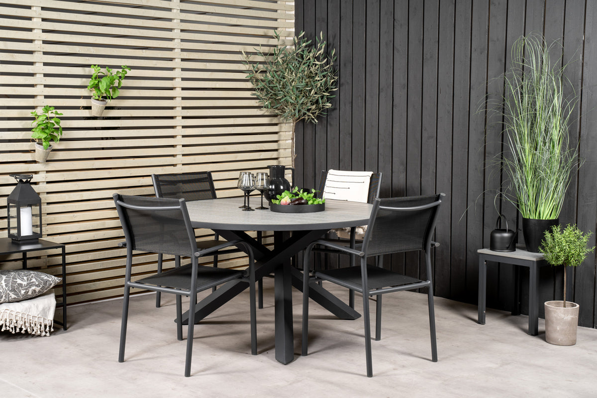 En spisegruppe i moderne og stilrent design. Spisebordet Parma og spisebordsstole Santorini er den perfekte kombination til havens hjerte!
