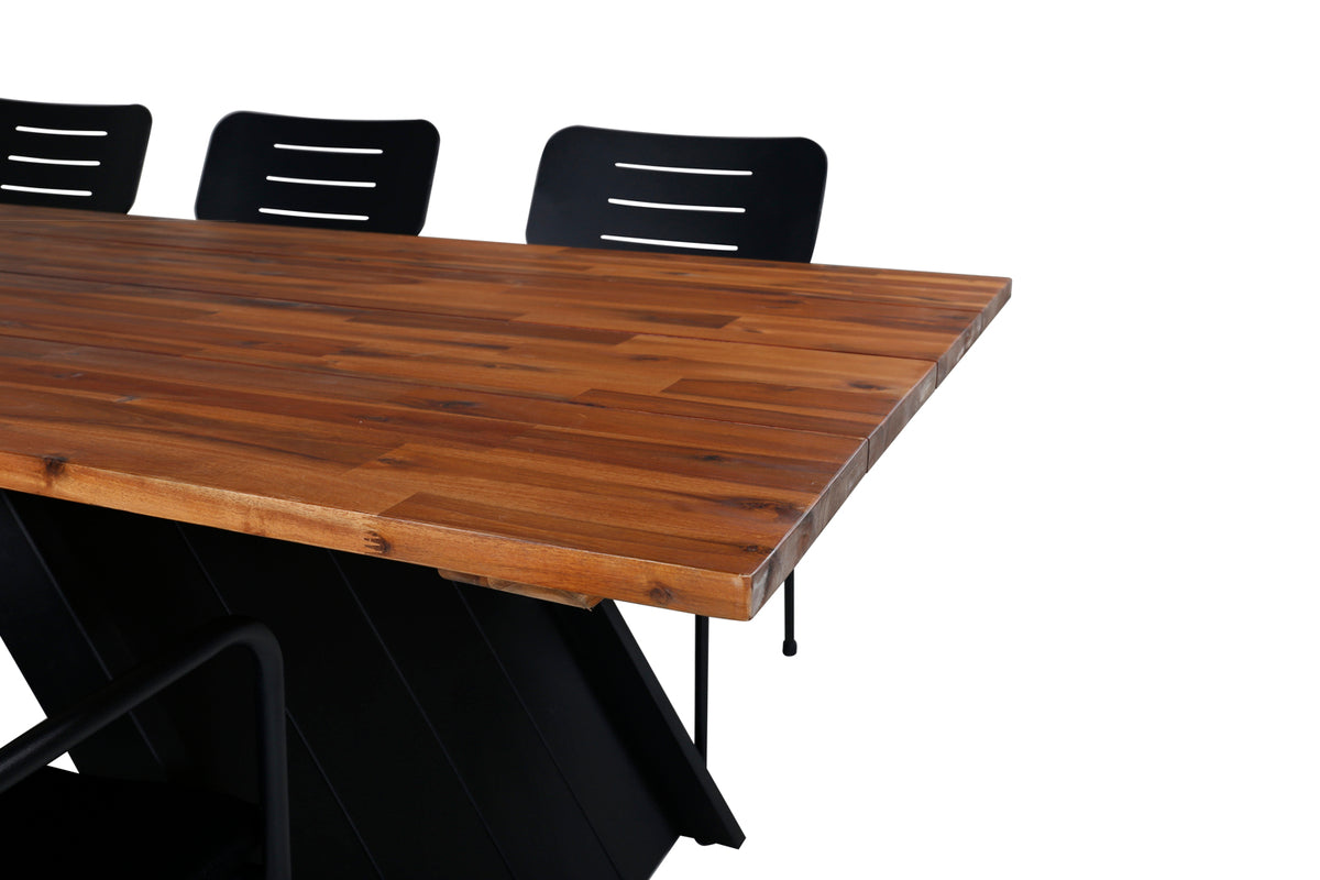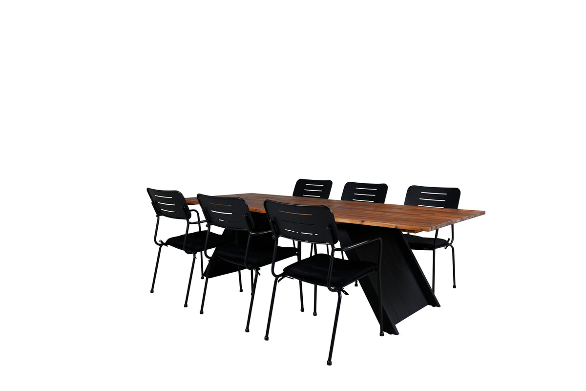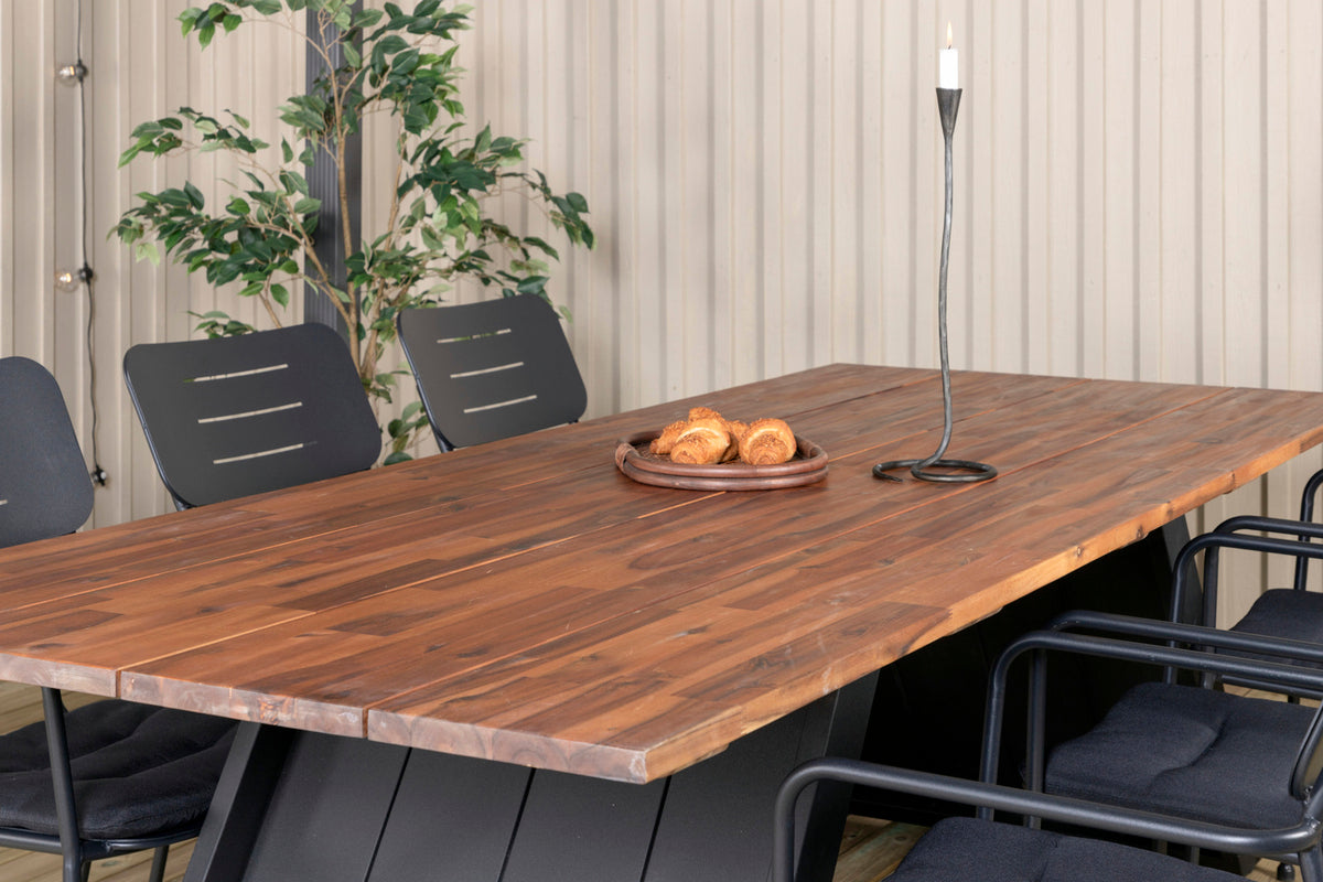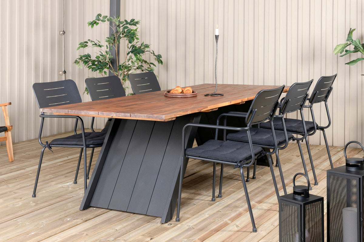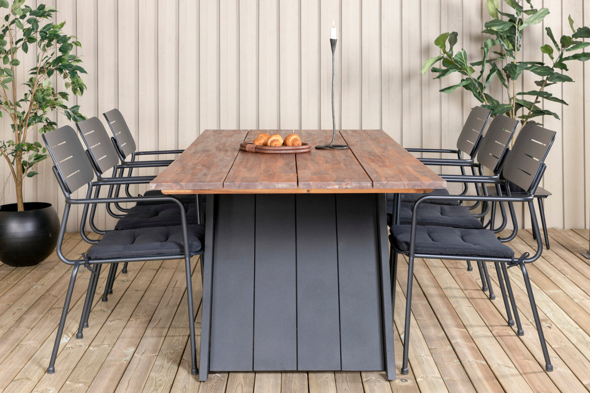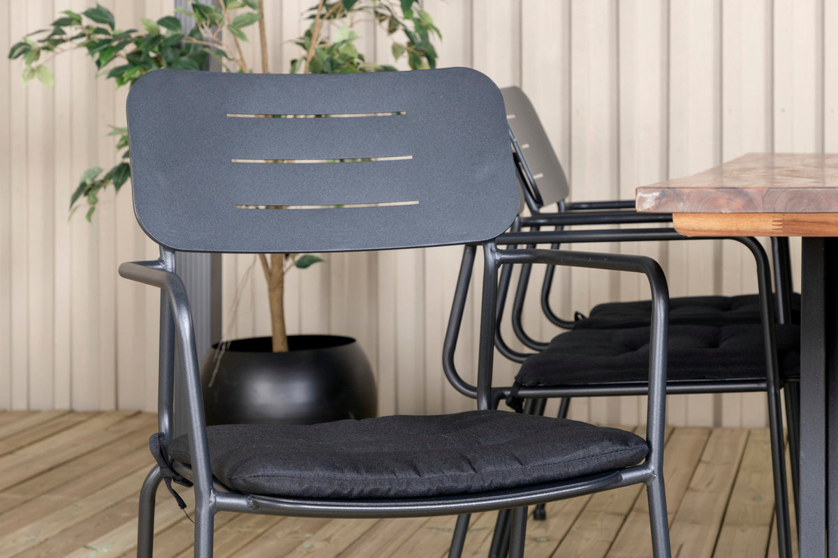 Opdater terrassens look i sommer med en moderne spisegruppe i slankt design! Vores stilrene spisestole i serien Nicke kombineres med vores populære spisebord Doory. Udvid dine middagsinvitationer til sene sommeraftener og slip for at bekymre dig om, at alle kan få plads!
