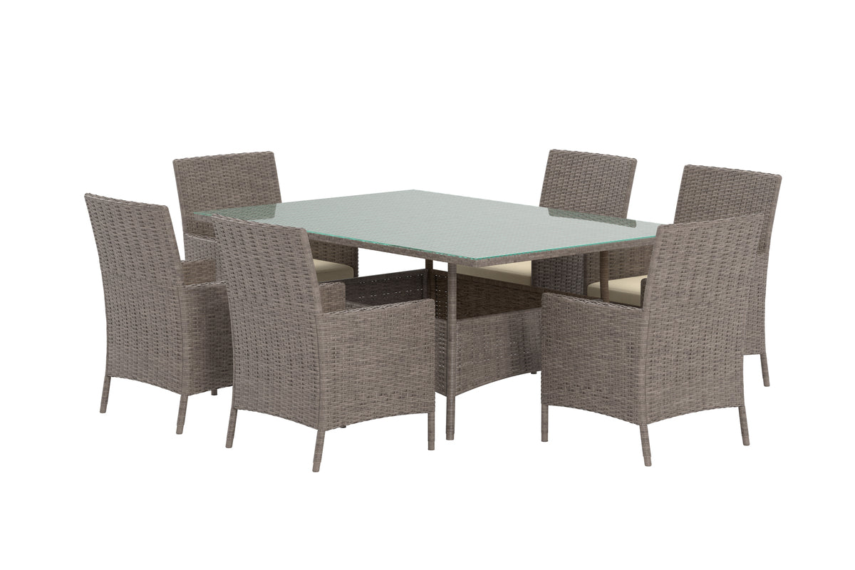Med Lefkas spisegruppe får du en kombination af klassisk stil, praktisk funktion og høj komfort – den perfekte løsning til at samle familie og venner udendørs.