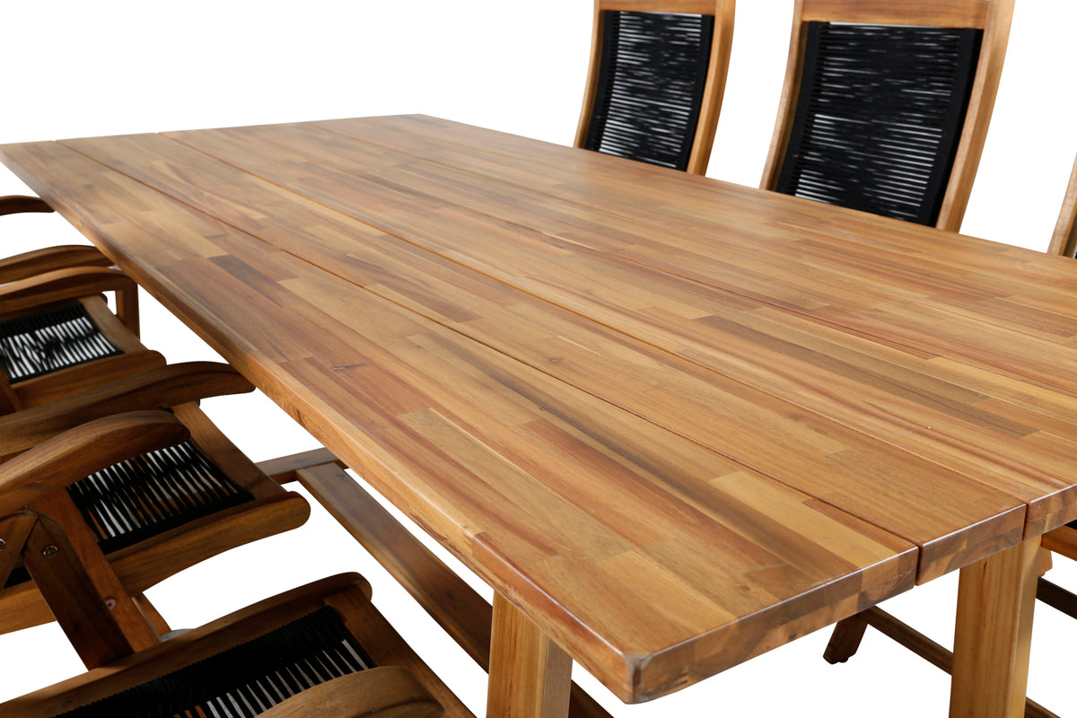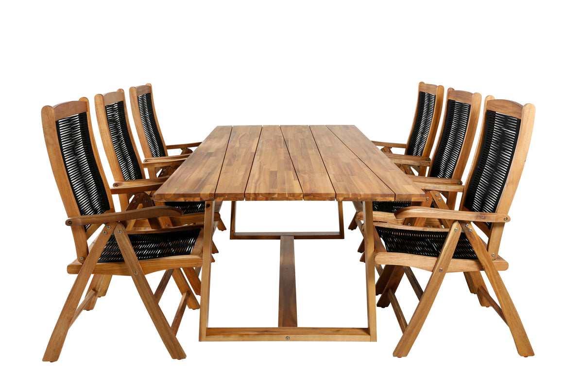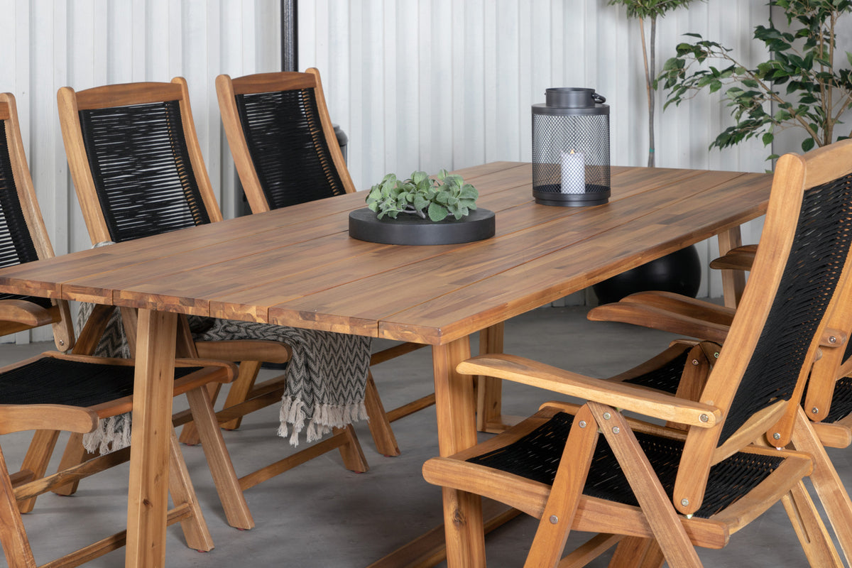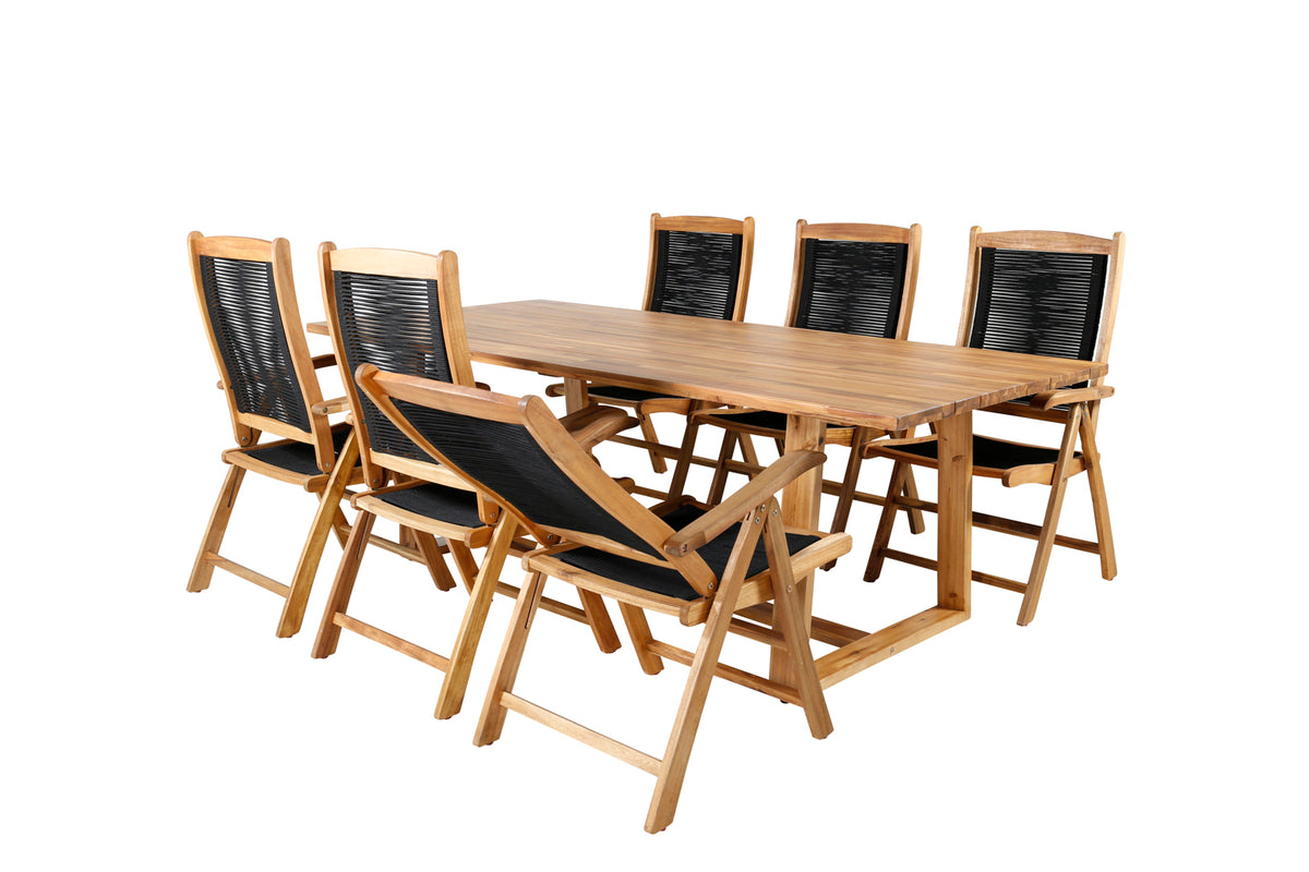 Stilrent, flot og slidstærkt! Her tilbydes du det bedste af alle verdener, når du kombinerer spisebord Plankton med fældbare stole fra serien Peter. Spisebordet har et klassisk og tidløst design og matcher udmærket til stolene, som du og dine gæster sidder behageligt i flere timer i. Skab et moderne blikfang på terrassen i sommer!