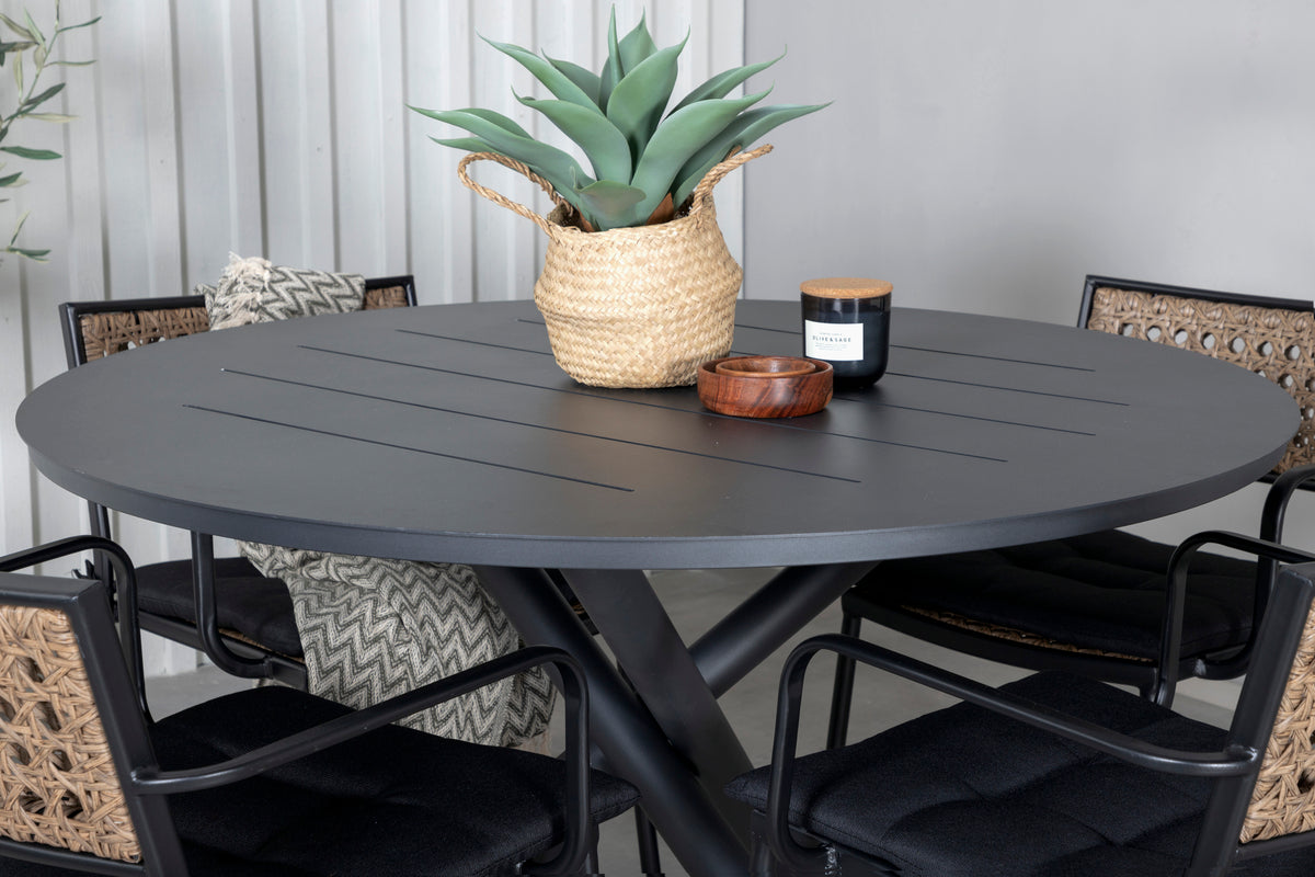 En harmonisk spisegruppe til sommerens måltider! Paola spisebordsstol er en perfekt blanding mellem dekorativt træ og stilren sort farve. De fine kontraster mellem farverne skaber en harmonisk følelse i udestuen! Her i perfekt kombination med vores runde spisebord Alma i sort aluminium. Helt enkelt en gennemtænkt spisegruppe, som du nemt skaber charmerende udendørs miljøer med!