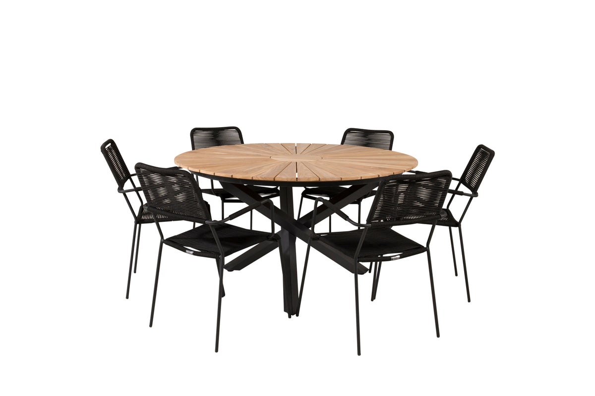 Mexico & Lindos Spisebord ⌀140 + Spisestole Sort
