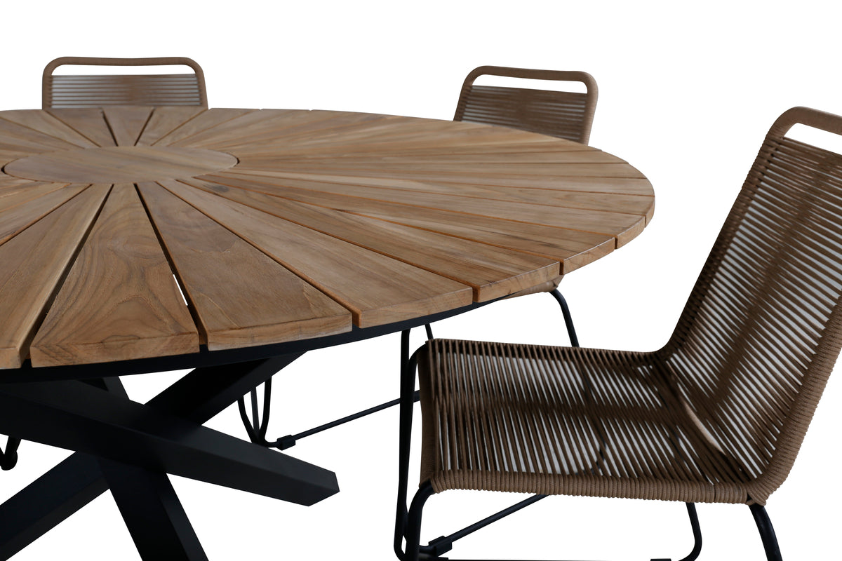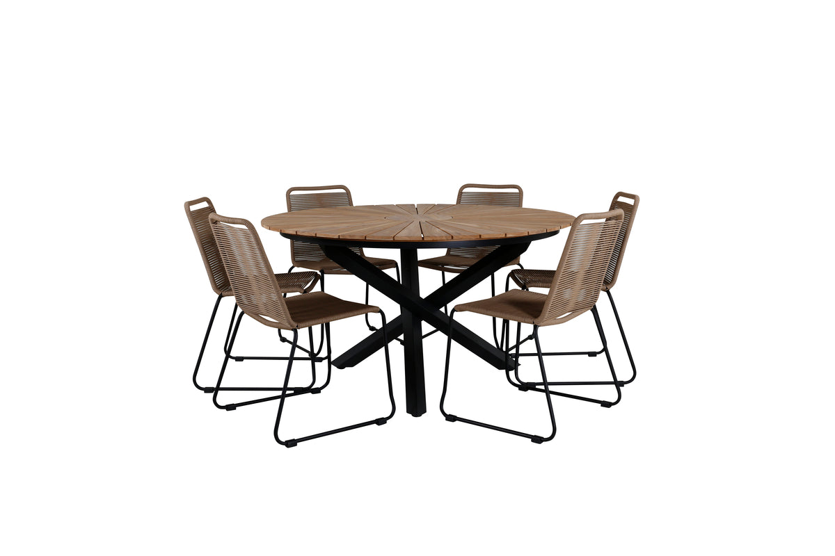 Mexico & Lindos Spisebord ⌀140 + Spisestole Brun