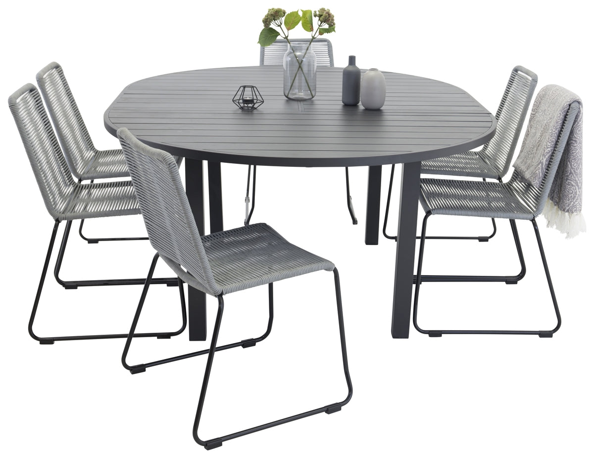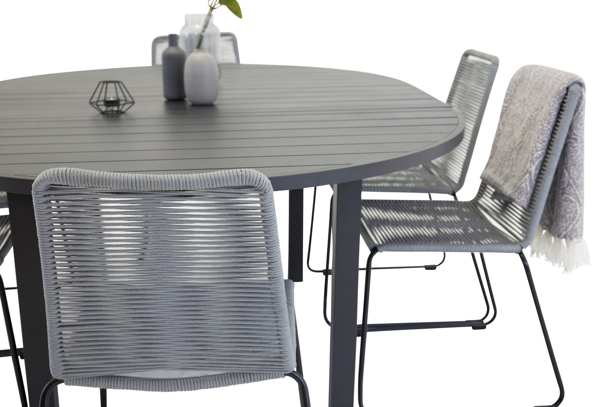 Marbella & Lindos Spisebord ⌀140 + Spisebordsstole Grå
