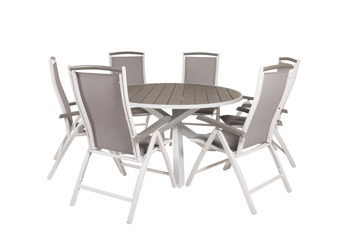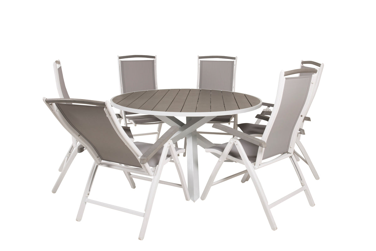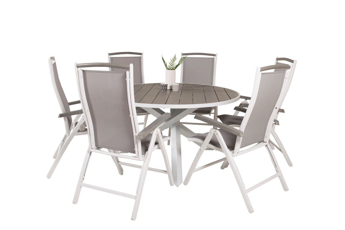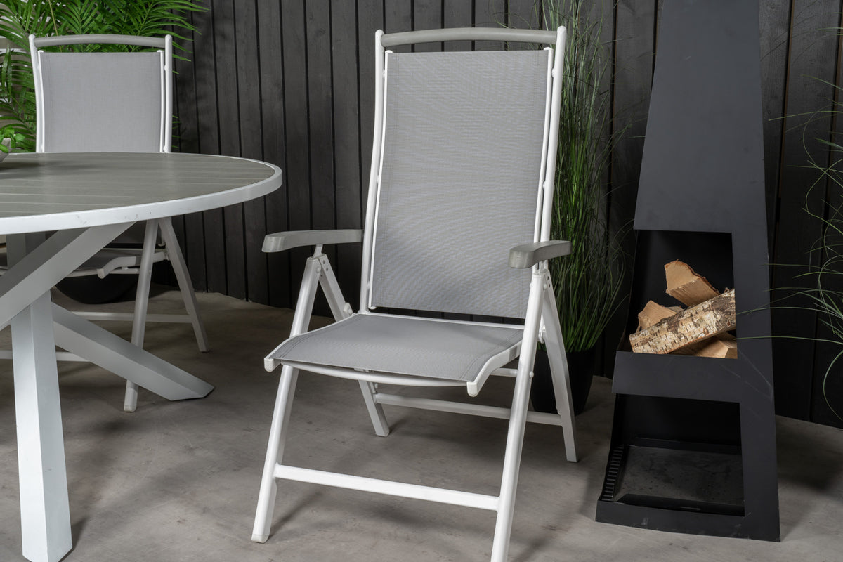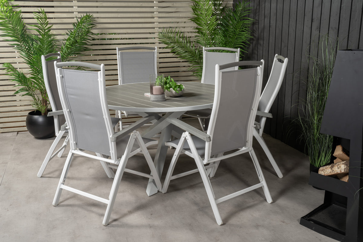 Moderne og hyggeligt! Spisebord Parma sammen med Albany spisestole giver dig en robust spisegruppe, der gør dig klar til udesæsonen. Stolene er fældbare med god komfort – her sidder du gerne længe og nyder sommerens dejlige stunder!
