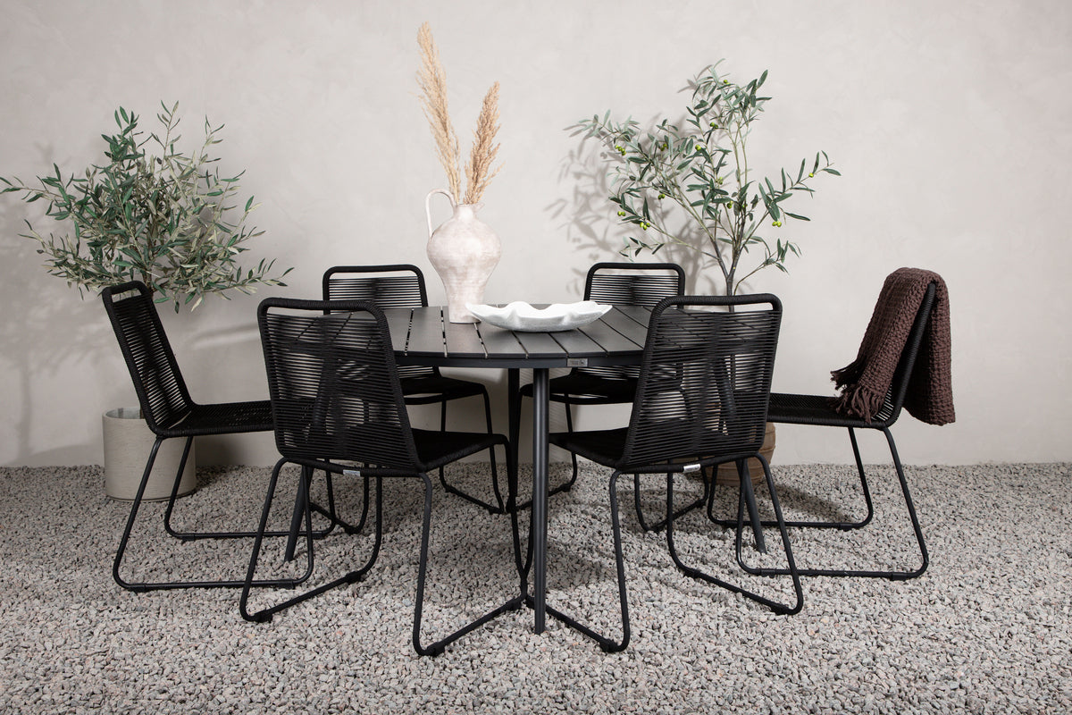 Break & Lindos Spisebord ⌀150 + Spisestole Sort