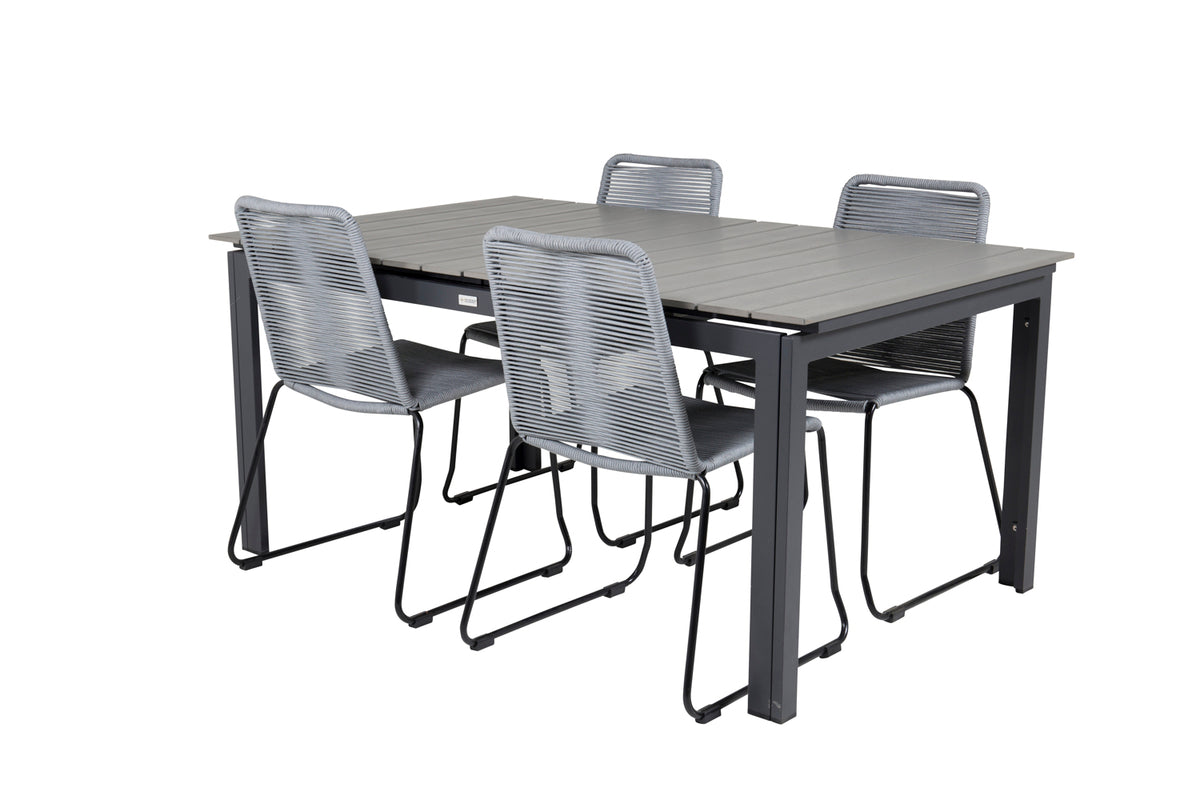 Levels & Lindos Spisebord 160x100x75 + Spisestole Grå