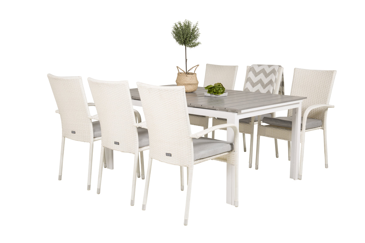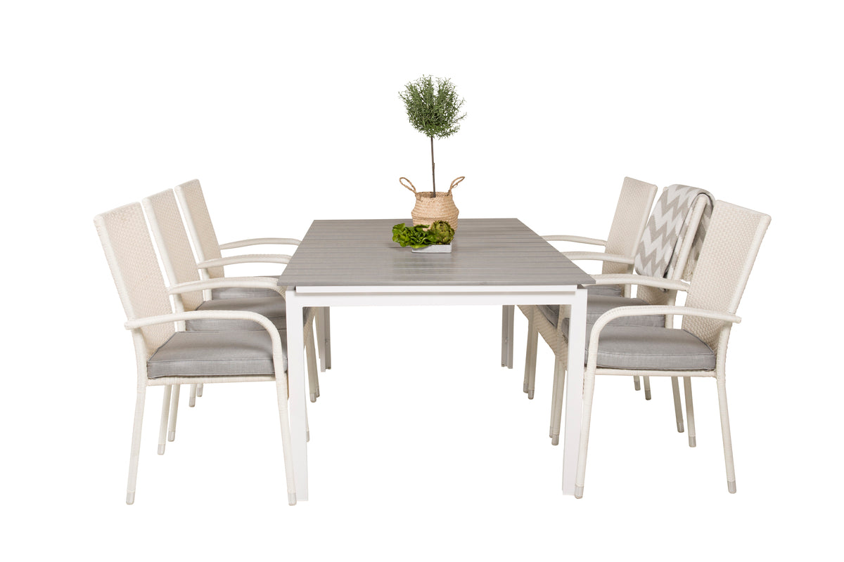 Klassisk spisegruppe, der passer i de fleste udestuer! Spisebord Levels sammen med stole fra serien Anna er som skabt til dig, der vil skabe en hyggelig og moderne følelse. Gør dig klar til sommerens dejlige udeliv!