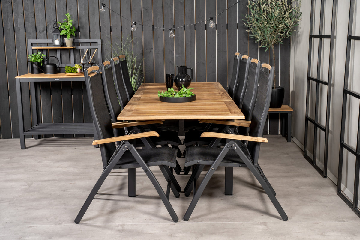 Klassisk og stilrent! Panama spisebord i sort aluminiumskonstruktion sammen med Panama 5-positionsstole inviterer til mange hyggelige familiemiddage fremover! Bordet er forlængeligt.
