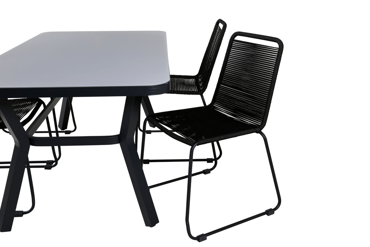Virya & Lindos Spisebord 160 x 91 + Spisestole Sort