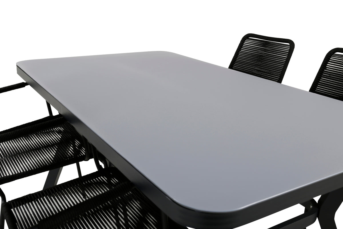 Virya & Lindos Spisebord 160 x 91 + Spisestole Sort