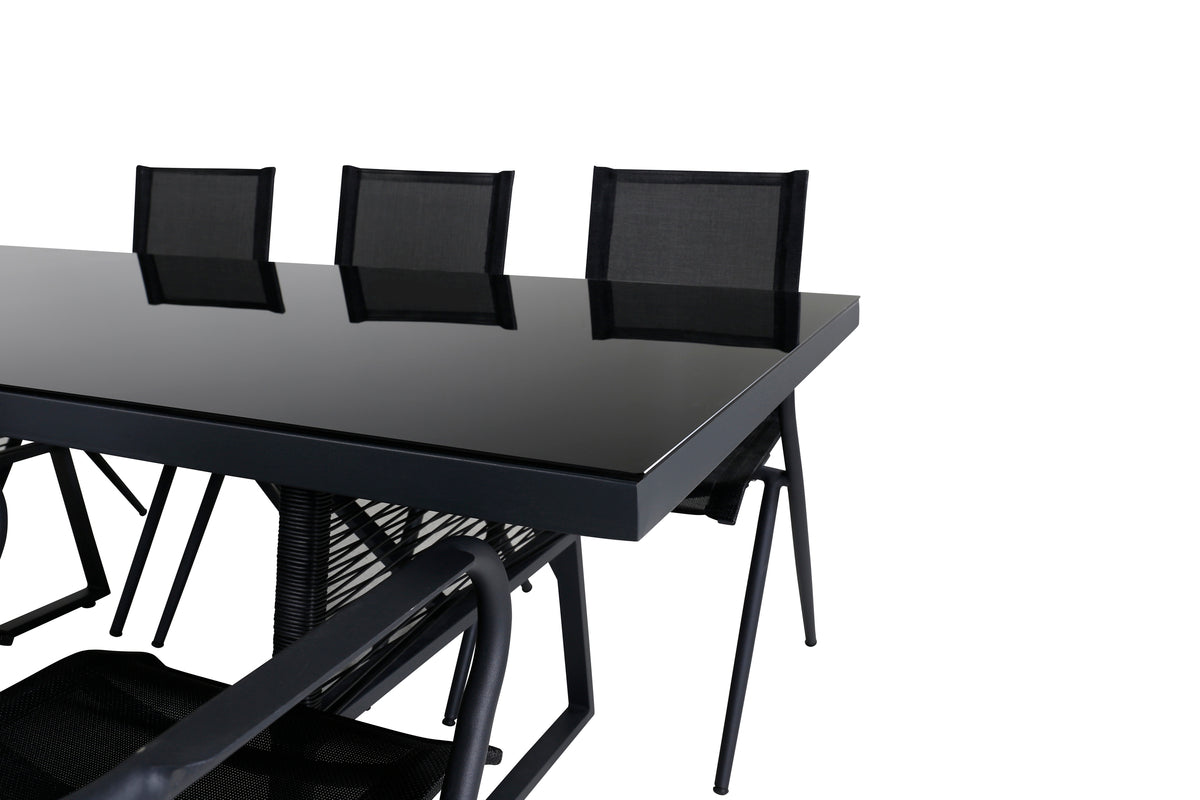 Dallas & Alina Spisebord 193x90 + Spisestole Sort