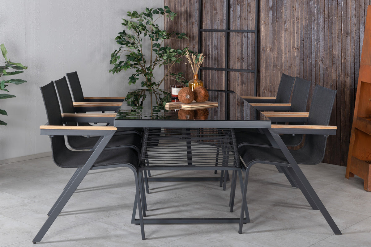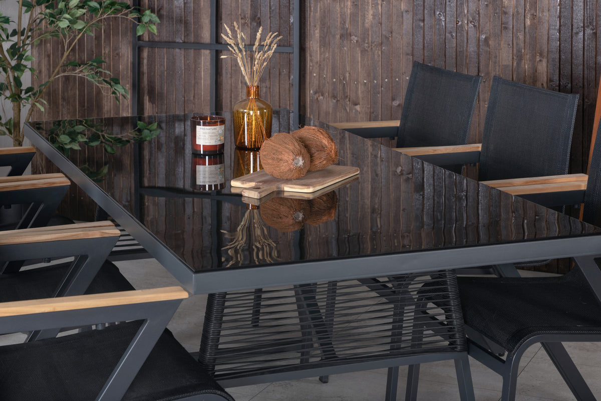 Dallas & Mexico Spisebord 193x90 + Spisestole Sort