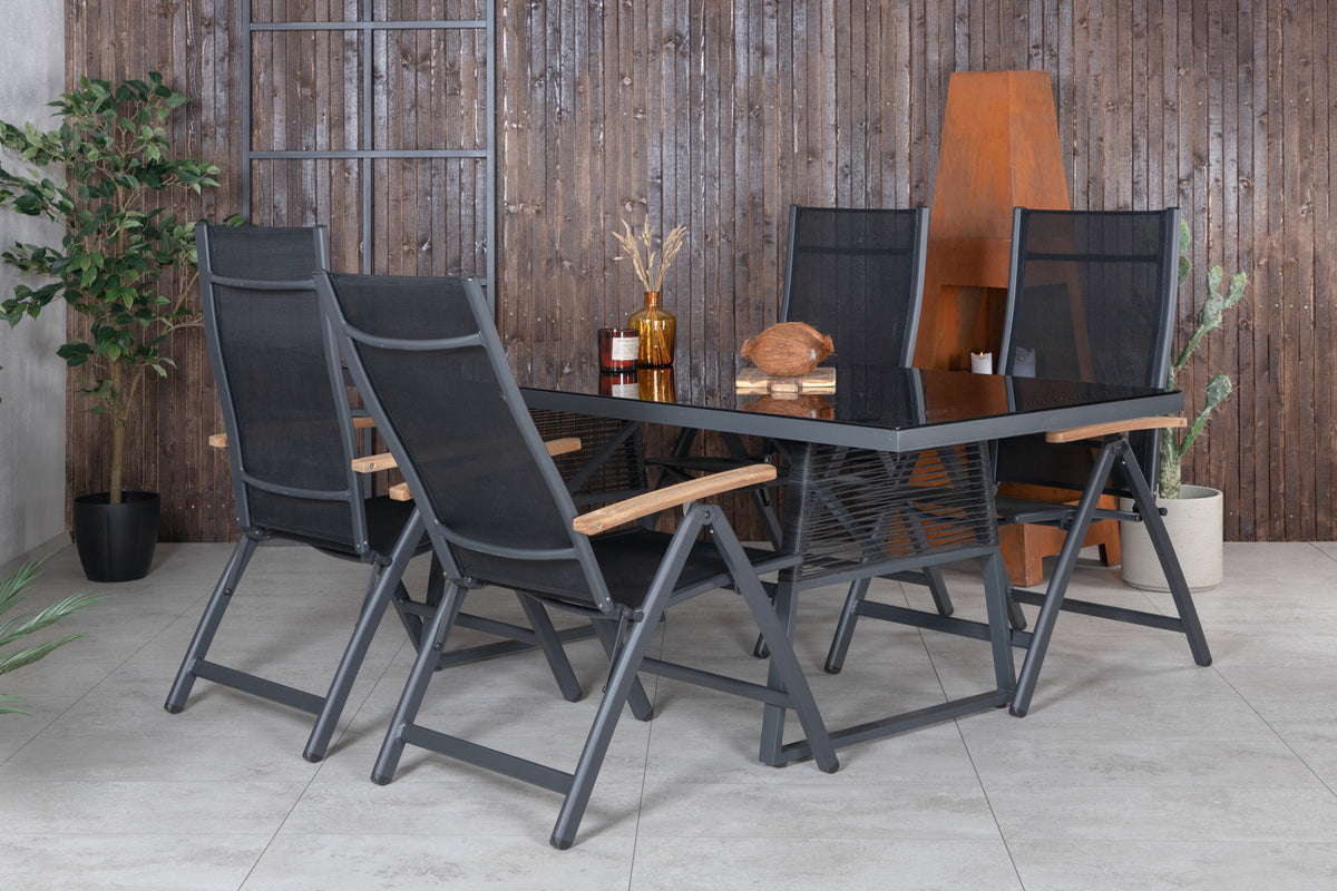 Spisebord Dallas i et slankt design, sammen med spisestole Panama - den perfekte kombination til dig, der ønsker en trendy spisegruppe, som passer lige så godt i din udestue som på din terrasse. Stolenes høje siddekomfort indbyder til lange og dejlige stunder med samvær!