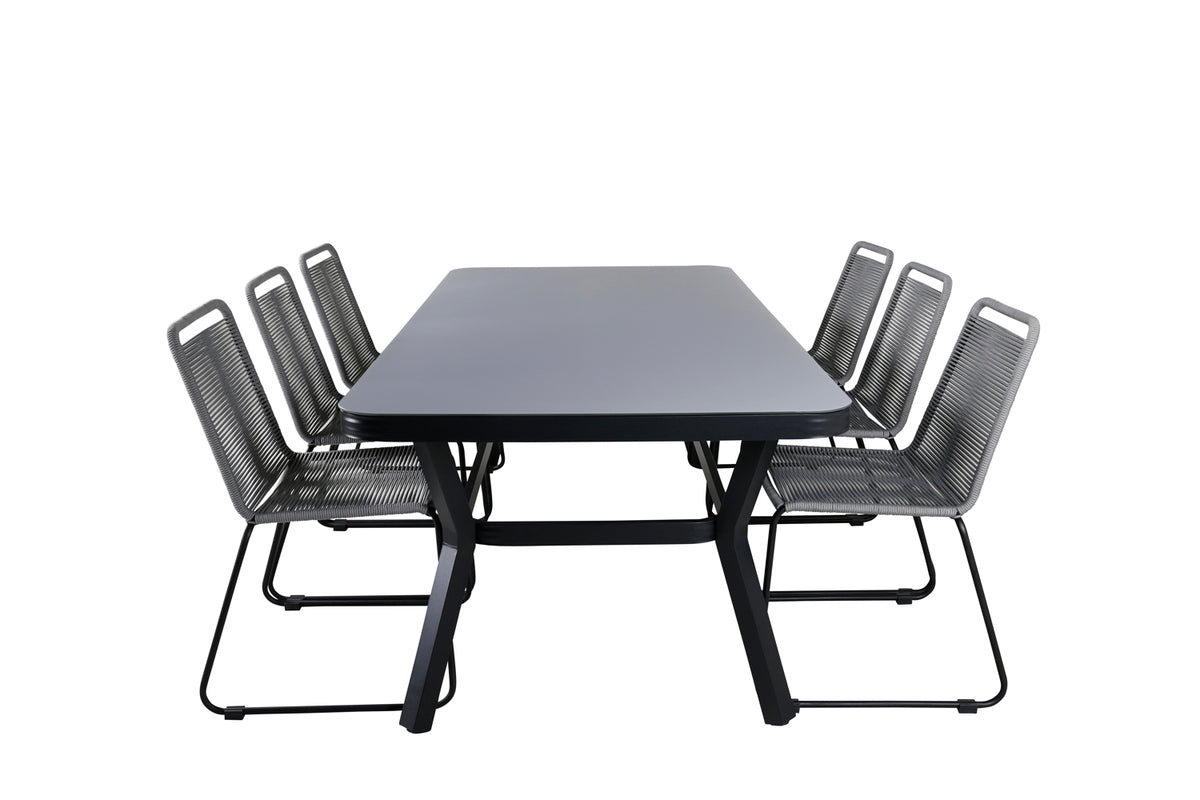 Virya & Lindos Spisebord 200x100 + Spisestole Grå