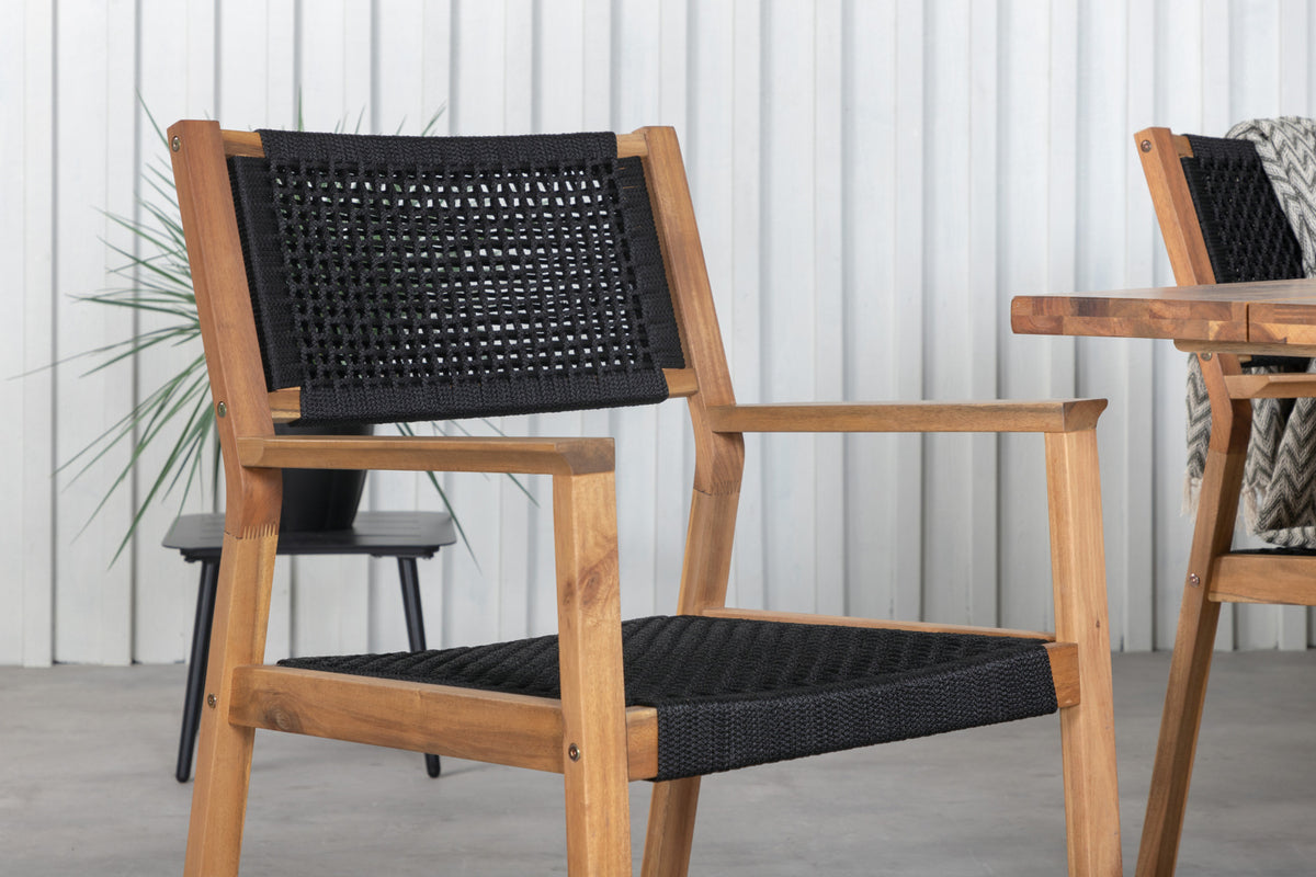 En lækker spisegruppe i moderne design! Spisebord Plankton i klassisk stil er både trendsikker og praktisk. Her sammen med siddevenlige og flotte spisestole i serien Little John. Saml familie og venner og nyd varme sommeraftener på terrassen!