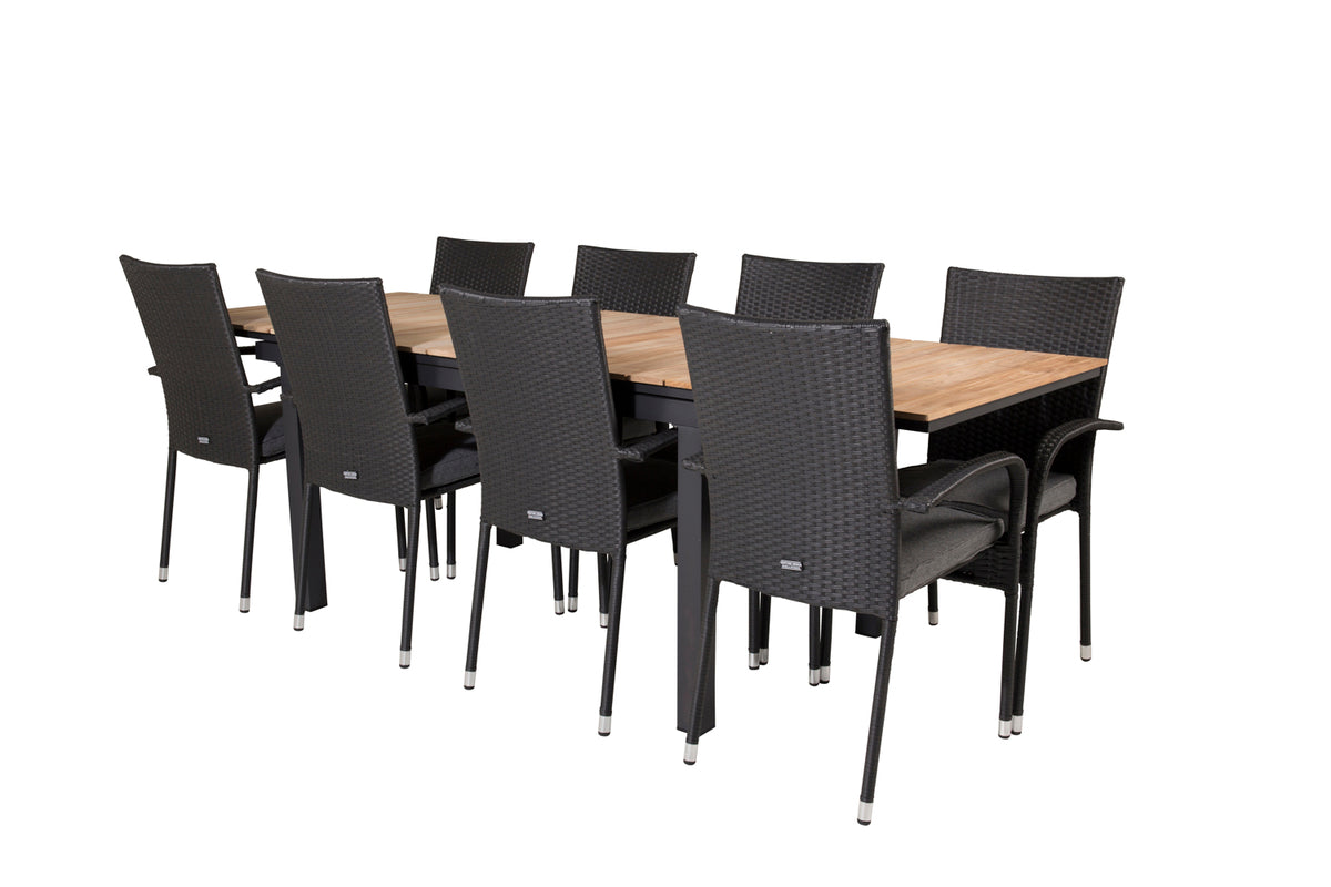 Mexico & Anna Spisebord 90x180/240 + Spisestole Sort