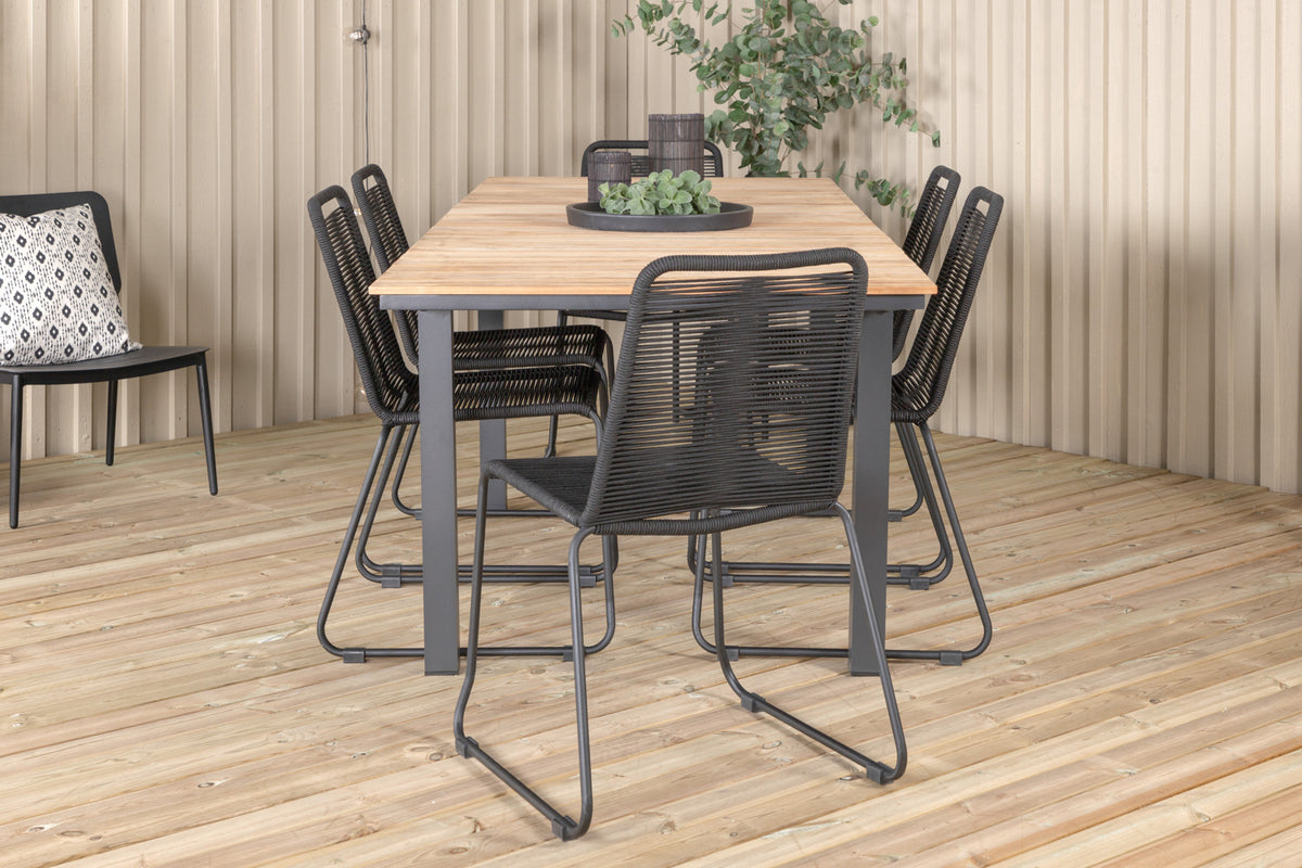 Mexico & Lindos Spisebord 90x180/240 + Spisebordsstole Sort