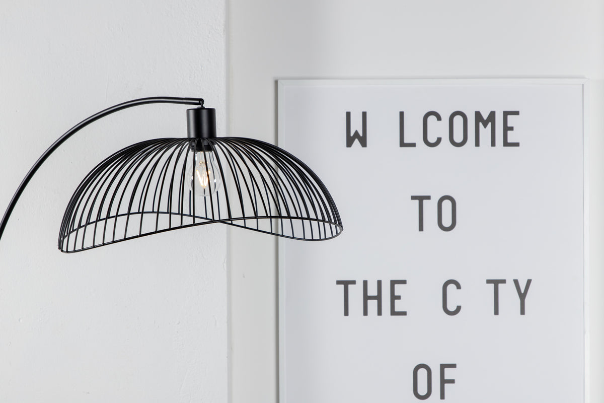 Denne gulvlampe fra Elsa-serien har et moderne og gennemtænkt design, der klatrer op ad trendlisterne! Lampens fods enkle design og let buede arm kombineret med lampeskærmens trendy udformning gør, at denne lampe falder i god jord hos de fleste. Lampens lyskilde kan justeres, hvis der ønskes punktbelysning, hvilket gør lampen både stilfuld og praktisk. Placer den i læsehjørnet, stuen eller i hallen!