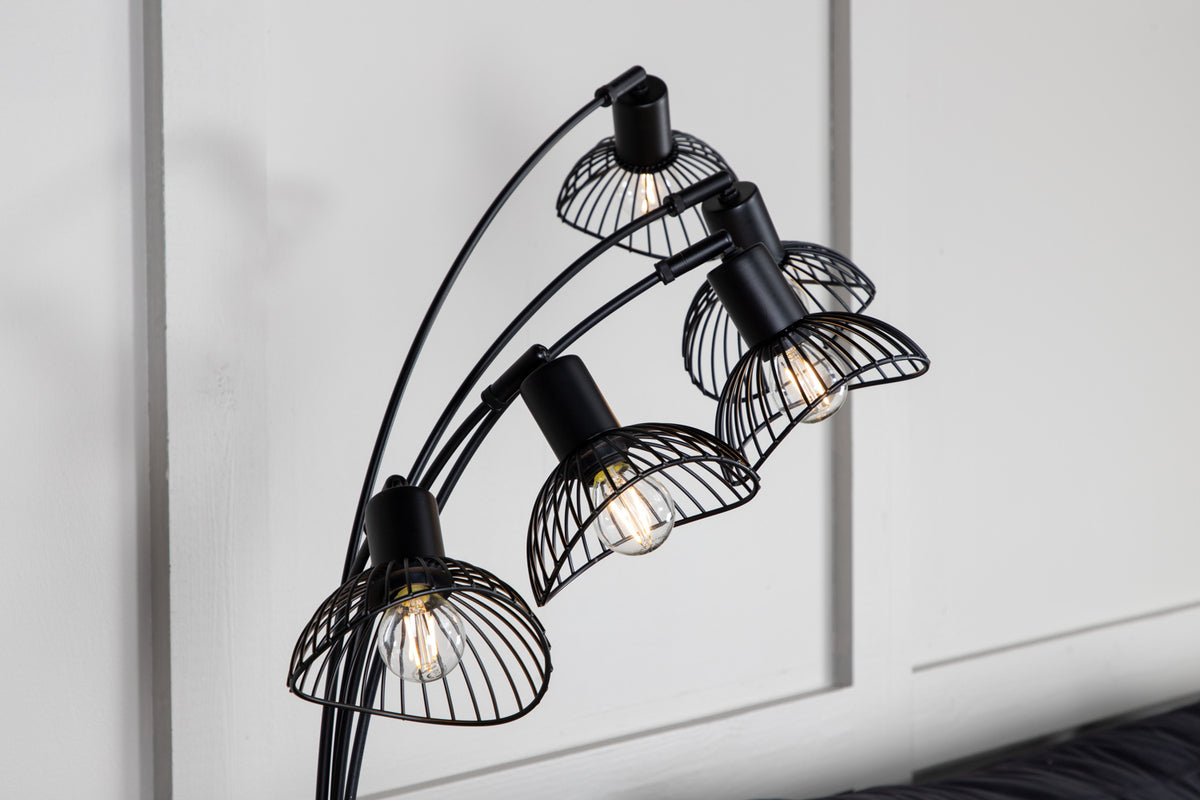 Denne gulvlampe fra Elsa-serien har et moderne og gennemtænkt design, der klatrer op ad trendlisterne! Lampens fods enkle design og let buede arme kombineret med det trendy design på de fem lyskilder gør, at denne lampe falder i god jord hos de fleste. Lampens fem lyskilder kan justeres, hvis punktbelysning ønskes, hvilket gør lampen både stilfuld og praktisk. Placer den i læsehjørnet, stuen eller i hallen!