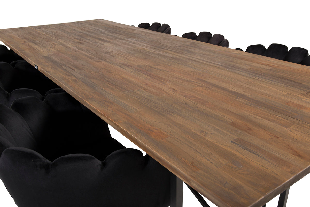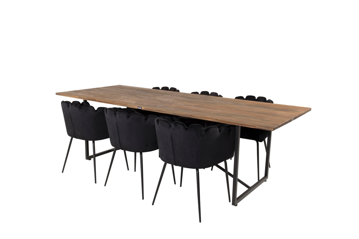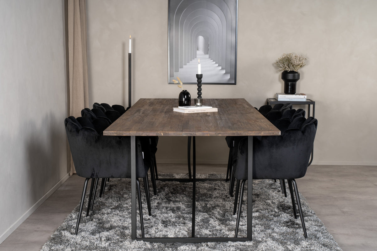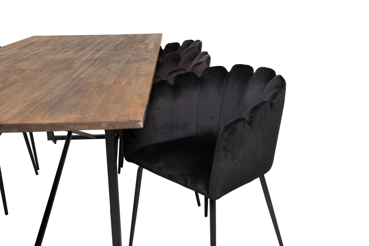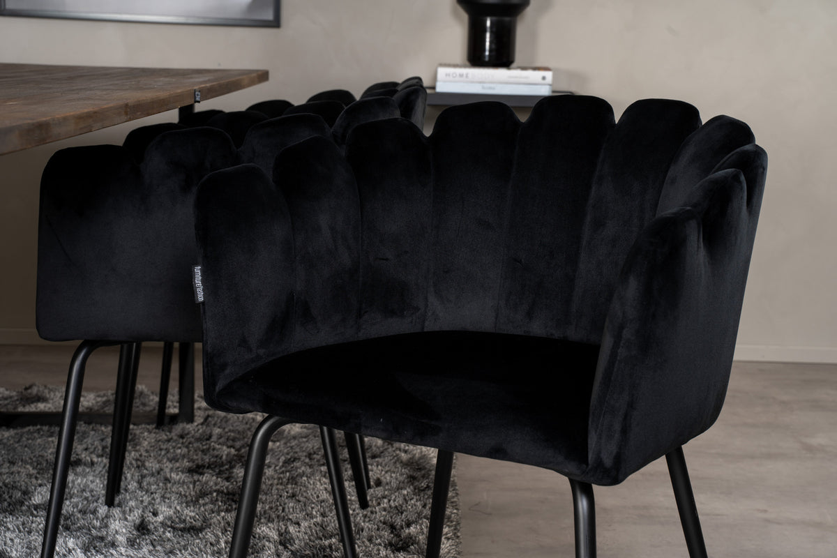 Spisebordet Padang i et robust design, sammen med sorte velourstole i Limhamn-serien - den perfekte kombination for dem, der ønsker en trendy spisegruppe. Her får du en spisegruppe, der direkte udstråler luksus og elegance.