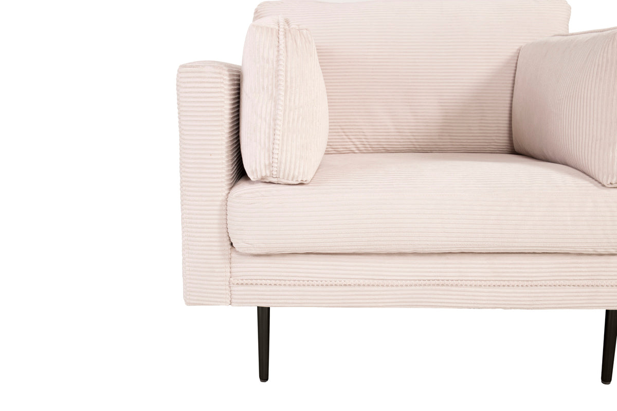 Lad moderne design møde 50'ernes nostalgi med denne trendy Manchester lænestol! Klædt i let fløjlsstof giver lænestolen en dejlig glans og moderne look til stuen. Det lige men samtidig bløde design, de smalle, høje ben og den generøse sæde dybde skaber en luftig og indbydende følelse. Et utrolig velovervejet samlet design med en klædt ryg, der gør det muligt at placere lænestolen midt i rummet. Indret alene som et stilikon eller i gruppe sammen med vores 3-sæders sofa, som også er i Boom-serien. Plejeanvisning: Fløjl har en tendens til at få trykmærker, når pelsen ligger ned. Aftrykkene kan få stoffet til at se slidt ud, hvilket her er helt normalt for denne type materiale. Afhængigt af hvordan lyset falder, kan stoffet ændre sig i de mest forskellige nuancer.