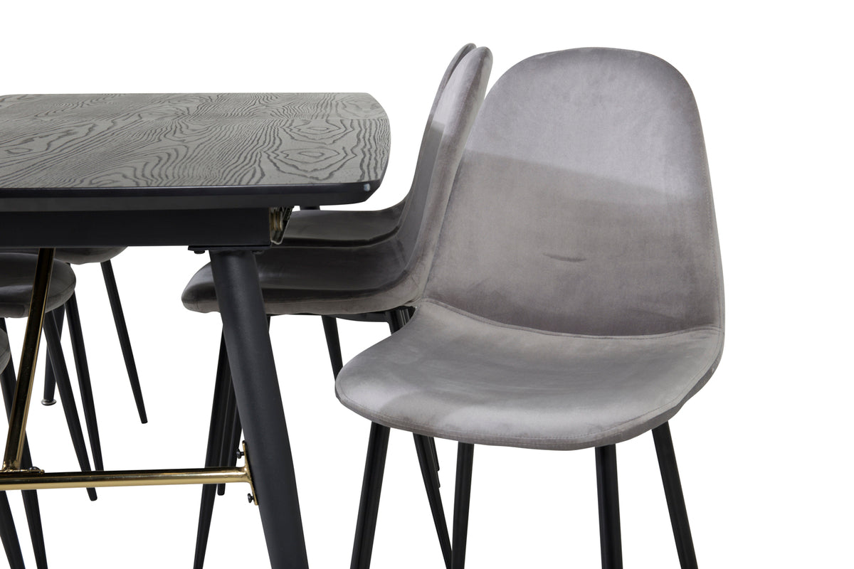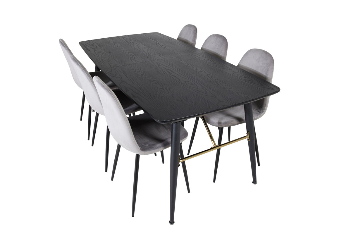 Guld & Polar Rektangulært Spisebord 180 x 85 Sort + Spisebordsstol 2-pak Grå