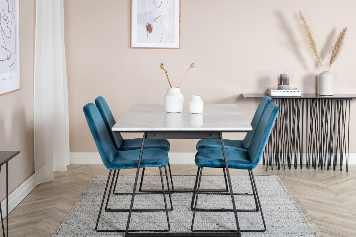 Spisebord Estelle sammen med spiseborde i serien Muce - praktisk, hyggeligt og indbydende! Dejlige farver, der skaber plads i rummet og inviterer til mange vidunderlige sociale øjeblikke.