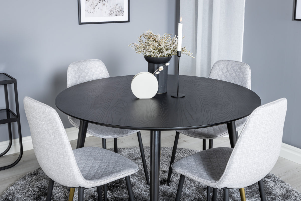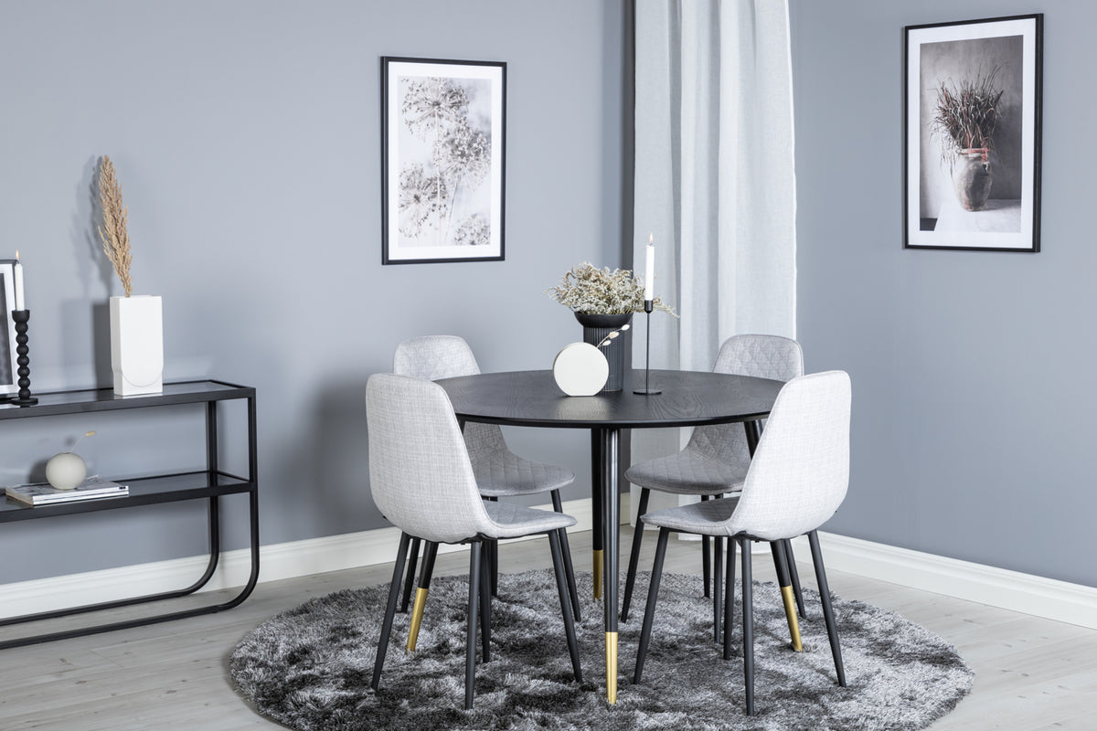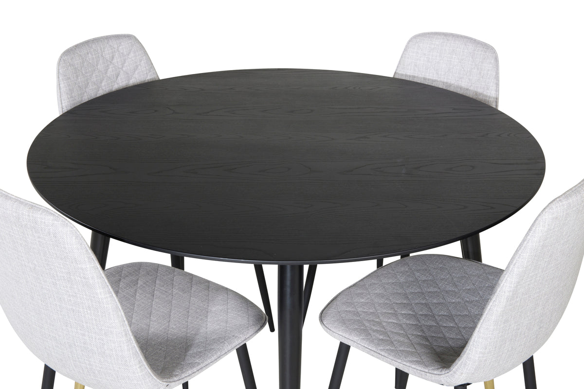 Dipp & Polar Rundt Spisebord ⌀115 Sort + Spisebordsstol 2-pak Grå